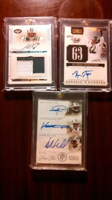 $3 Shipping I will post a few at a time. Please claim in thread-First to claim gets it Please check back often as I will be posting many ![]() Cam Newton Contenders RC Auto (80) ![]() Ronnie Hillman Contenders Auto (8) ![]() Ronnie Lott National Treasures Auto GU 4/5 (75) ![]() Ray Rice Exquisite RPA (75) ![]() Dwayne Allen National Treaures RPA X 2 (50) ![]() Kirk Cousins Topps Chrome Rainbow set minus Super (200) Awesome Deal!!