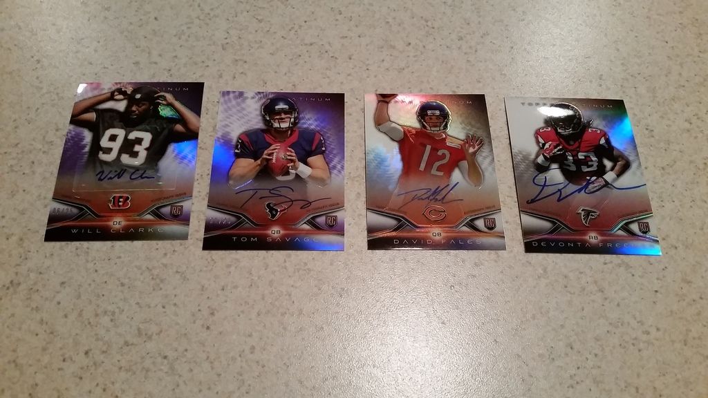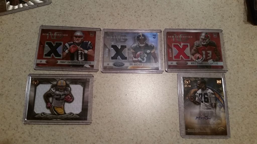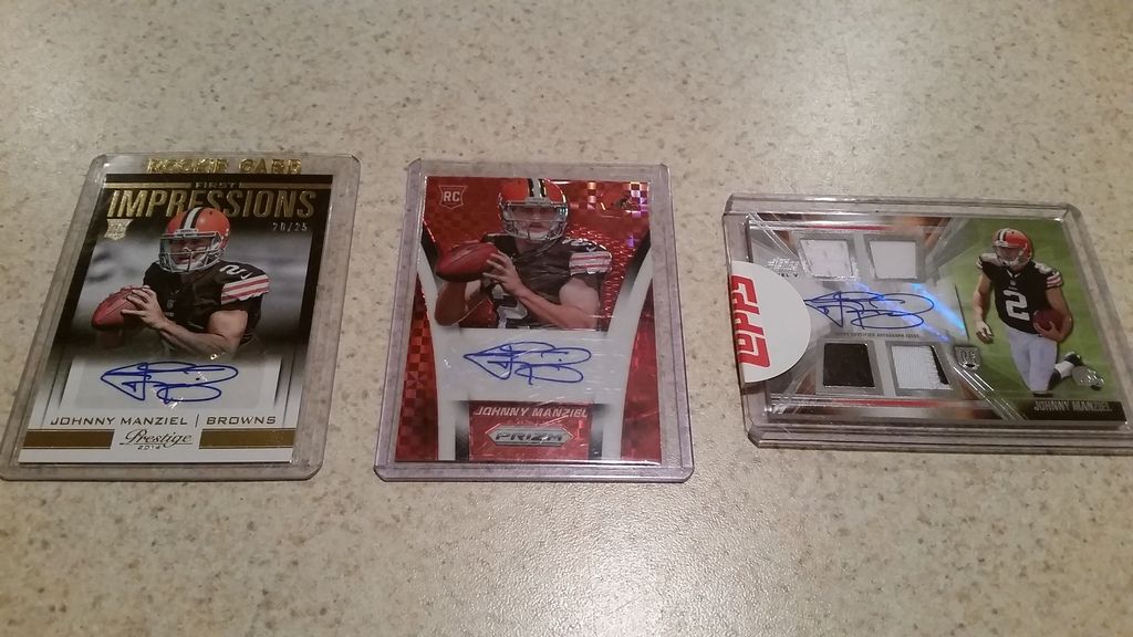 ![]() Johnny Manziel Prestige #20/25 Johnny manziel prizm #39/50 Johnny manziel prime 5 ![]() Charles Sims #42/50 4 color Bishop Sankey 3 color Dri Archer #1/15 De'Anthony Thomas inscriptions ![]() Prizm Tajh Boyd #24/60 De'Anthony Thomas #52/199 Tony Romo #4/10 Connor shaw #169/249 2 color Brandin Cooks #78/99 3 color ![]() Tom Savage #91/99 3 color Tom Savage #122/699 2 color Kyle Van Noy #129/399 Cody Hoffman#171/399 ![]() Will Clark #6/25 Tom Savage #1/25 $old David Foley Davonta Freeman ![]() Randy White #41/49 3 color Warren Moon #7/99 Michael Strahan #5/5 2 color Donte Moncrief #95/99 ![]() Jimmy Garoppolo #146/299 Dri Archer #352/599 Mike Evans #126/299 Eddie Lacy jumbo Marion Grice #9/99 Last edited by MrLank; 08-25-2015 at 01:36 PM. Reason: Selling as lot now |