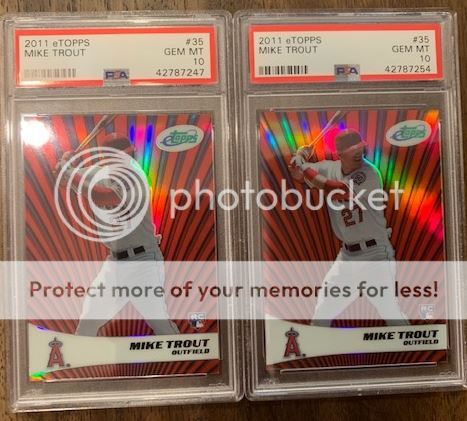 Part of me really wants to jump on a Trout eTopps PSA 10 before they go to the moon--I like my PSA 9 but I have a feeling these will age better than some of his other RCs.
