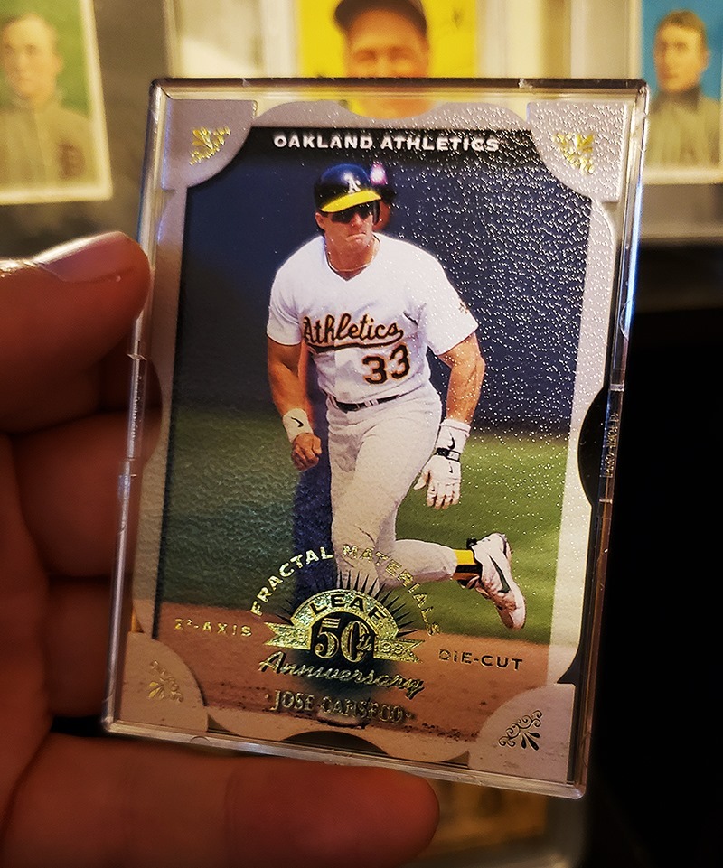 Fun fact! The A's signed Canseco in 97 just so he could be seen in some of the sexiest 90s cards ever while wearing an A's jersey.