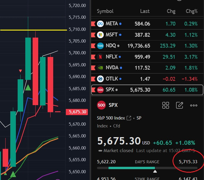 Retest of 5710 was the spot for puts. I didn't take any there but it played out nicely