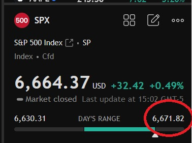 Tested 6650 yesterday but didn’t close above, so I’m not giving the edge to a 6700 test anymore SPX: 6640 key level & 6600 is also a key level / 6700 top (6706) / 6575 bottom (6590 support)