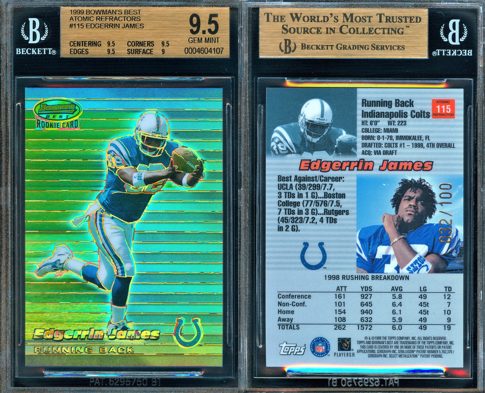![]() 1998 Bowman's Best - Performers - Atomic Refractors #BP8 - Anthony Simmons /50 Courtesy of COMC.com