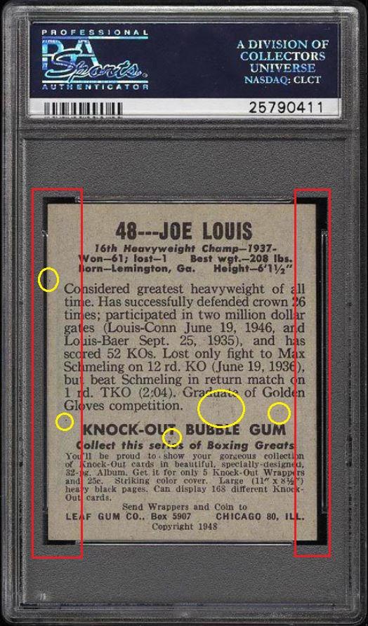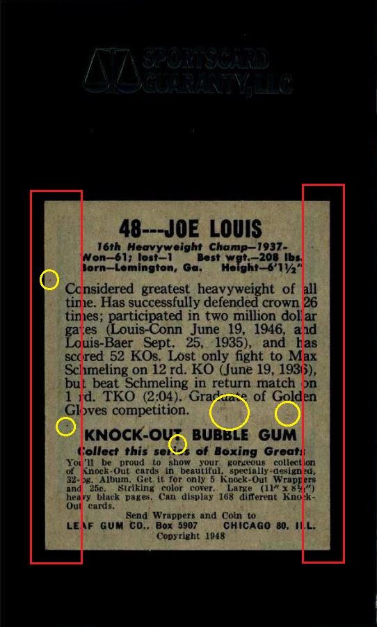 Any serious 1948 Leaf collector who looks at that PSA 8 Frank Gustine would laugh at how small the borders are.