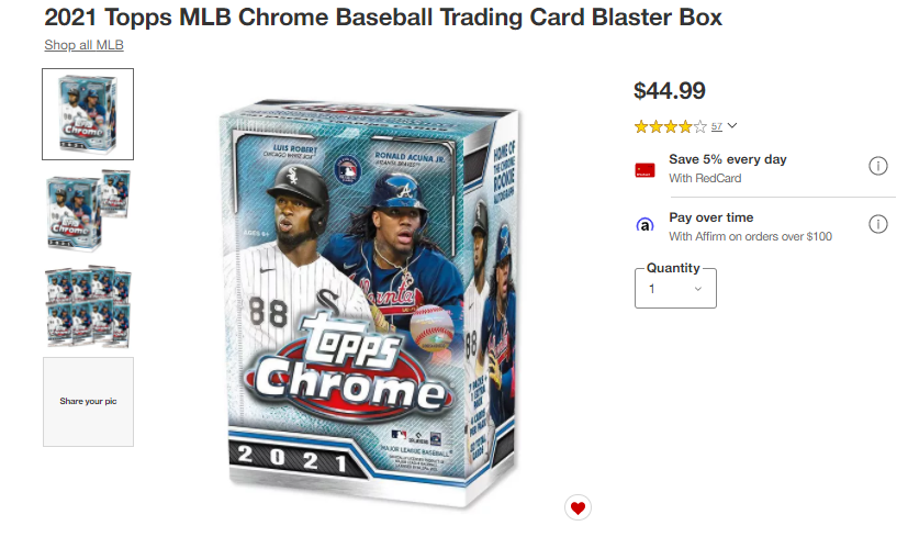 Topps Chrome Blasters now listed at $44.99 on Target (Sold by Target). Not sure if that's an error or if they came back in stock or what but that is a big time yikes.