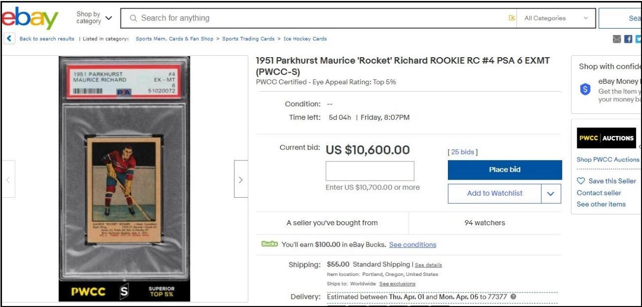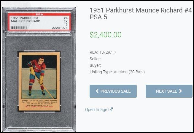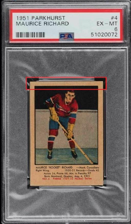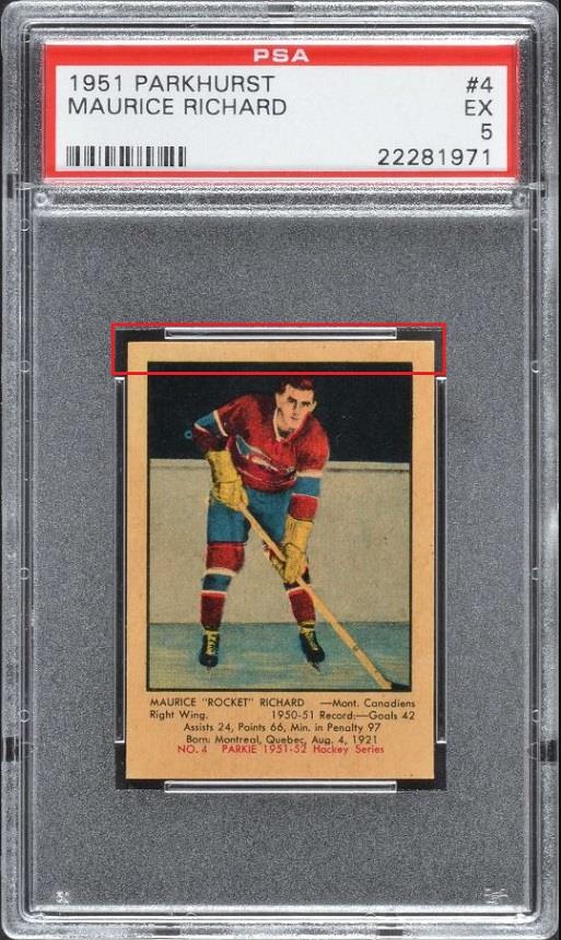 1951 Parkhurst Maurice Richard #4 This trimmed card is a current Ebay listing by PWCC. A friend of Blowout tipped it our way. The card was purchased anonymously through Robert Edwards Auctions in 2017. The card has been stickered by Brent Huigens (for what it's worth). Ebay listing: https://www.ebay.com/itm/1951-Parkhu...MAAOSwfcZgUTyS ![]() Purchase history before trimming: ![]() ![]() ![]() ![]() ![]() ![]()