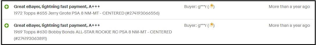 https://www.blowoutforums.com/showthread.php?t=1455615 Gregory Alan Libersher - Estero, Florida - Ebay ID: glibersher is a CARD TRIMMER 57 year old Greg Libersher, from Estero, Florida (near Naples) has been buying and selling on Ebay since February 2001. The vast majority of his Ebay purchases are of raw cards with the bulk of the purchases being from Greg Morris Cards. He is a high volume PSA card submitter with many purchases just in the past few months. He likely has bulk subs currently waiting to be graded at PSA due to PSA's immense backlog. All cards appear to have been graded by PSA. Both his Ebay and VCP masked buying ID is g***r I have been unable to find any photos of Libersher. He is a golf pro at Naples Heritage Golf & Country Club in Naples, Florida. Libersher received an award from PSA last year for his 1933 Goudey Indian Set Registry collection. ![]() ![]() ![]() ![]() Image grab from Libersher's Ebay page: ![]() Libersher's feedback received as a seller: ![]() Libersher's feedback received as a buyer: ![]() The Bobby Bonds 1969 Topps card below was used to tie Greg Libersher to being the buyer (masked ID g***r) and seller (glibersher) and therefore responsible for altering a card that was graded by PSA. This is a snip of the purchase made by Ebay masked ID g***r from Ebay seller nismocollection: ![]() This is a snip of the sale made by Greg Libersher through his Ebay User ID glibersher: ![]() This snip was pulled from Ebay seller nismocollection feedback left for others. The Jerry Grote card that was purchased will be posted later. The glibersher masked ID is g***r: ![]() This snip was pulled from glibershers feedback received as a buyer: ![]() The above information ties Greg Libersher and his Ebay user ID glibersher to being the buyer, alterer and seller of the Bobby Bonds card below: PSA Cert #47269042 1969 Topps Bobby Bonds #630 Value gain of $67.50 PSA Set Registry: Kelly's Bobby Bonds Topps set This card was purchased by masked buyer ID g***r (Greg Libersher) from Ebay seller nismocollection as a PSA 8 for $54.00 on January 19, 2020. Same card was sold by Ebay seller glibersher (Greg Libersher) as a PSA 9 for $238.50 on November 23, 2020. Yellow circles are print, fiber, stain or chipping identifiers. Red box identifies trimmed bottom edge. ![]() ![]() ![]() ![]() ![]() ![]() __________________________________________________________________________________________________________________________ Other cards: __________________________________________________________________________________________________________________________ PSA Cert #41871609 1968 Topps Tony Perez #130 Value gain of $2,066.06 PSA Set Registry: private This card was purchased by masked buyer ID g***r (Greg Libersher) from Ebay seller gregmorriscards as a raw card for $63.00 on May 01, 2018. Same card was sold by Ebay seller glibersher (Greg Libersher) as a PSA 10 for $2,129.06 on October 16, 2018. Yellow circles are print, fiber, stain or chipping identifiers. Red box identifies trimmed bottom edge. ![]() ![]() ![]() ![]() ![]() ![]() ![]() ![]() __________________________________________________________________________________________________________________________ PSA Cert #28405294 1960 Topps Ed Modzeleswsi #33 Value gain of $329.11 PSA Set Registry: none found This card was purchased by masked buyer ID g***r (Greg Libersher) from Ebay seller gregmorriscards as a raw card for $5.55 on August 29, 2017. Same card was sold by Ebay seller glibersher (Greg Libersher) as a PSA 9 for $334.66 on August 26, 2018. Yellow circles are print, fiber, stain or chipping identifiers. Red box identifies trimmed bottom edge. ![]() ![]() ![]() ![]() ![]() ![]() ![]() ![]() __________________________________________________________________________________________________________________________ PSA Cert #42953149 1970 Topps Jack Marin #36 Value gain of $519.00 PSA Set Registry: TGN 70-71 Topps BBKB PSA 8, 9, 10 This card was purchased by masked buyer ID g***r (Greg Libersher) from Ebay seller gregmorriscards as a raw card for $49.00 on November 17, 2018. Same card was sold by Ebay seller glibersher (Greg Libersher) as a PSA 9 for $568.00 on May 20, 2019. Yellow circles are print, fiber, stain or chipping identifiers. Red box identifies trimmed top edge. ![]() ![]() ![]() ![]() ![]() ![]() __________________________________________________________________________________________________________________________ PSA Cert #47267915 1963 Parkhurst Toe Blake #34 Value gain of $67.50 PSA Set Registry: none found This card was purchased by masked buyer ID g***r (Greg Libersher) from Ebay seller gregmorriscards as a raw card for $47.00 on April 14, 2020. Same card was sold by Ebay seller glibersher (Greg Libersher) as a PSA 8 for $114.50 on January 16, 2021. Yellow circles are print, fiber, stain or chipping identifiers. Red box identifies trimmed top edge. ![]() ![]() ![]() ![]() ![]() ![]() __________________________________________________________________________________________________________________________ More cards to follow.
