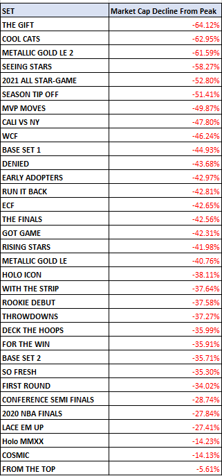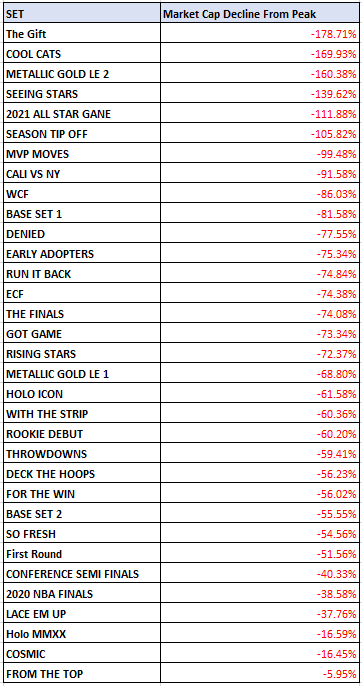 - You being right about print runs not mattering as much is another sign that there is not much intersectionality between this and physical trading cards. I feel like there are complete different markets with different collectors...the few of us doing TS are either doing it for a profit or spending little (compared to cards). - I feel like a big reason some of the early, limited sets are not dropping as hard it's because whales are the ones holding those moments. Those are easy to control that Series 2 Base, for example. I'm not saying they are manipulating the market, I think they are just super bullish. But I can't see those prices being realistic when comparing them to the rest of the market. I've seen my port value crash and lost almost 50%...on the bright side, moments are almost at the price point where I can start collecting them.