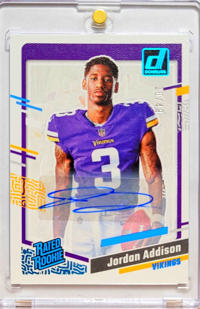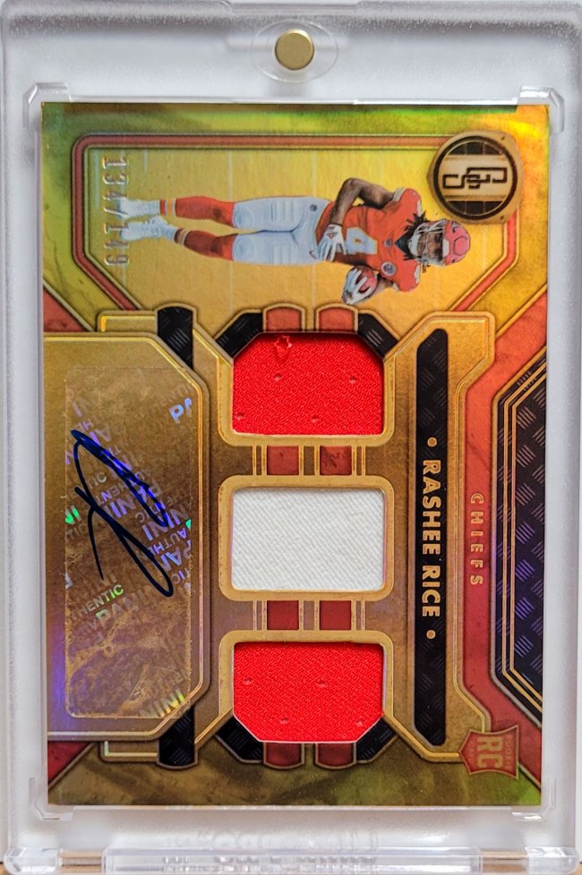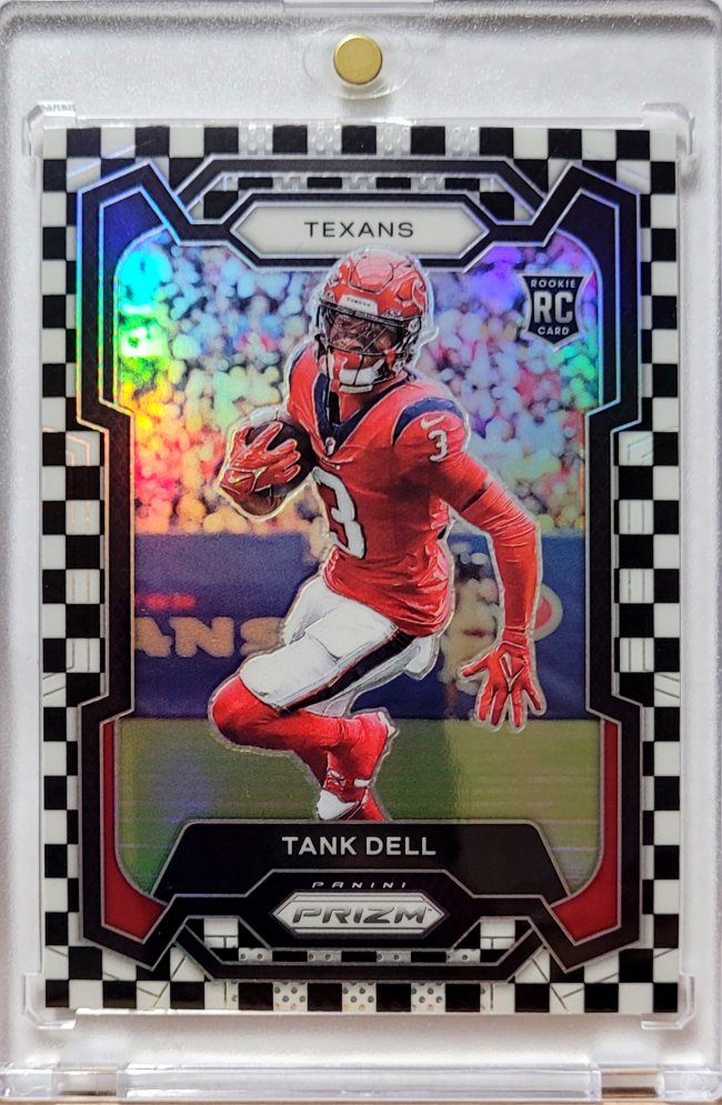 I don't usually buy non-QB's but I think Tank Dell is a beast, and will have a great career, and these Red Jersey w/ Red helmet cards of his are fire. This specific card on the Red border /100 is only like a $15 card so not a huge one, but looks fantastic.