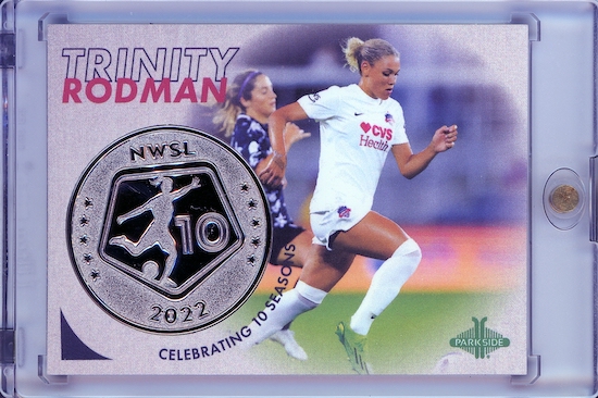 8 coins included Pino, Sophia Smith, and both Mewis sisters 2 Captains 3 Internationals 1 Majestic (Card 19 - I think this is the same Spirit team shot from the 2021 set) 8 Next Waves incl Ordonez 3 Original 21's incl Alex Morgan 5 White (base) Signature Series autos: Ava and Alana Cook (both numbered PSS-AC), Endo, Huitema, Hubly 1 Pink Signature Series Auto (/100) of Jaelin Howell 2 Blue Signature Series Autos (/50): Kornieck and Mckeown 7 Strikers: incl Press, Ordonez, and Sophia Smith. (duplicate Bethany Balcers who I like) Notes: - Those packs are really glued down in the box. If the cards weren't as sturdy as they are I'd have killed some getting them out of the box. - The Next Wave cards are all numbered /50 in the upper right corner, but card #1 (Tinaya Alexander) also has 001/500 printed in the center near the bottom. Odd. - Total of 60 base cards over eight packs (not counting parallels). 150-card base sets will be expensive to build. - Of the 33 rookies in this set, I got 15 (base), 6 Pink (/225), and one blue (/25). - Cards are great quality (with the exception of centering/chopping off the ends of some card numbers - minimal). - All will fit in a penny sleeve except for the coin cards. "Thick" top loaders for all.