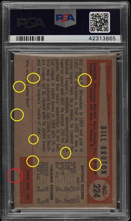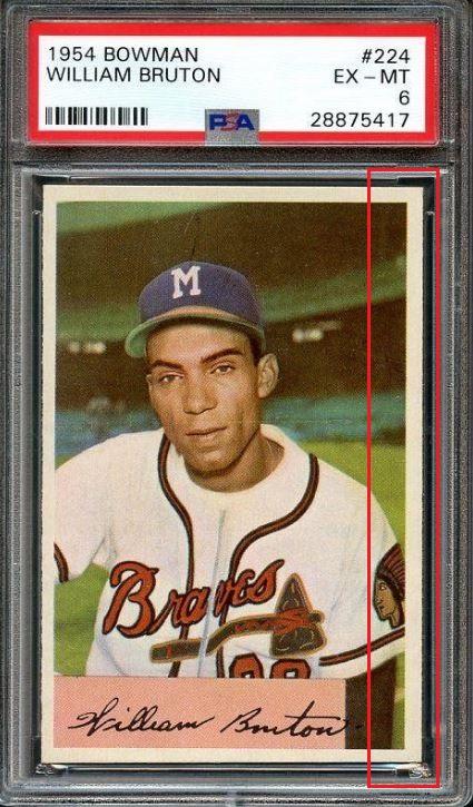 I can't thank you guys enough for finding a way to bring the PWCC scam to light. Please don't stop scrutinizing his never ending inventory. Very nice Mini Mays Bowman there. A fourth grader could catch that. What does that tell you? PSA is really no better than GAI, and I hope all those stupid plastic containers are tainted, just like GAI in the near future. Brent just filled a need for bigger numskulls than himself. If that is possible. He and his Card Doctor buddies are very slimy individuals and PSA is very incompetent, All those guys do is spin cards in and out PSA holders, doctoring them, I mean Conserving them along the way. Anyone buying from PWCC would need their heads examined at this point. It is very apparent that Brent Mastro and Moser the Hoser should be in JAIL. |
