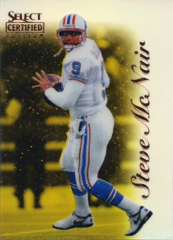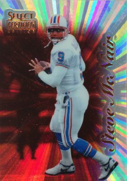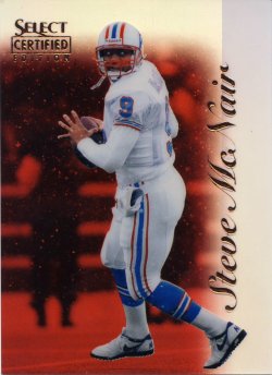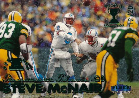 1999 Fleer Tradition Trophy Collection /20 ![]() I really like the photo on this one. And big thanks to burke23 for this: 1998 E-X2001 Essential Credentials Now /27 ![]() With this, all I need is the '98 Future to have all of the 90s McNair Essential Credentials, so if you've got one you wouldn't mind selling, let me know. And for something a little different, I've shared this one before elsewhere, but not in this thread yet: 1991 Wild Card 1000 Stripe ![]() As far as I know, the first impossible-to-find parallel ever. No idea what the print run was, but couldn't have been too high at all. The base card was $1 in Beckett at one time, so you do the math.