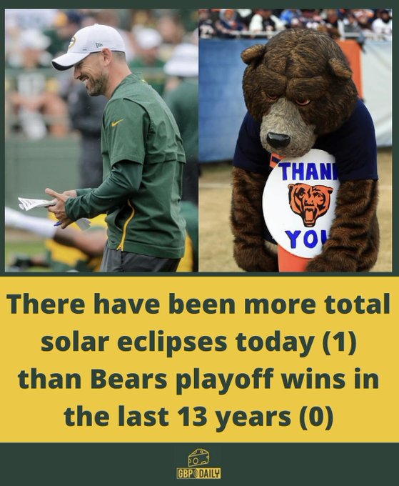 Bears fans will wind up going to the path of totality on the wrong day because every Bears fans' calendar is from 1985. |