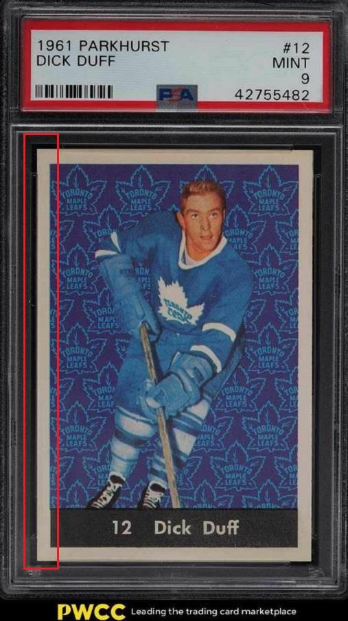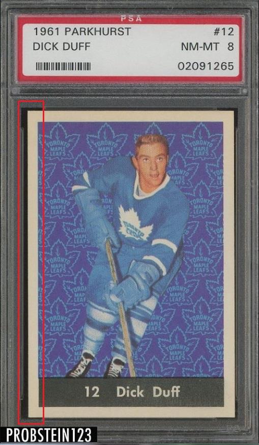 Only in the bizarro world of TPG deference does a 1961-62 Parkhurst card of Dick Duff get trimmed. It's an indefensible trope--a perfectly illustrative microcosm--of everything that's gone horribly wrong with third party grading.