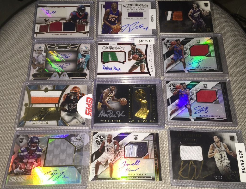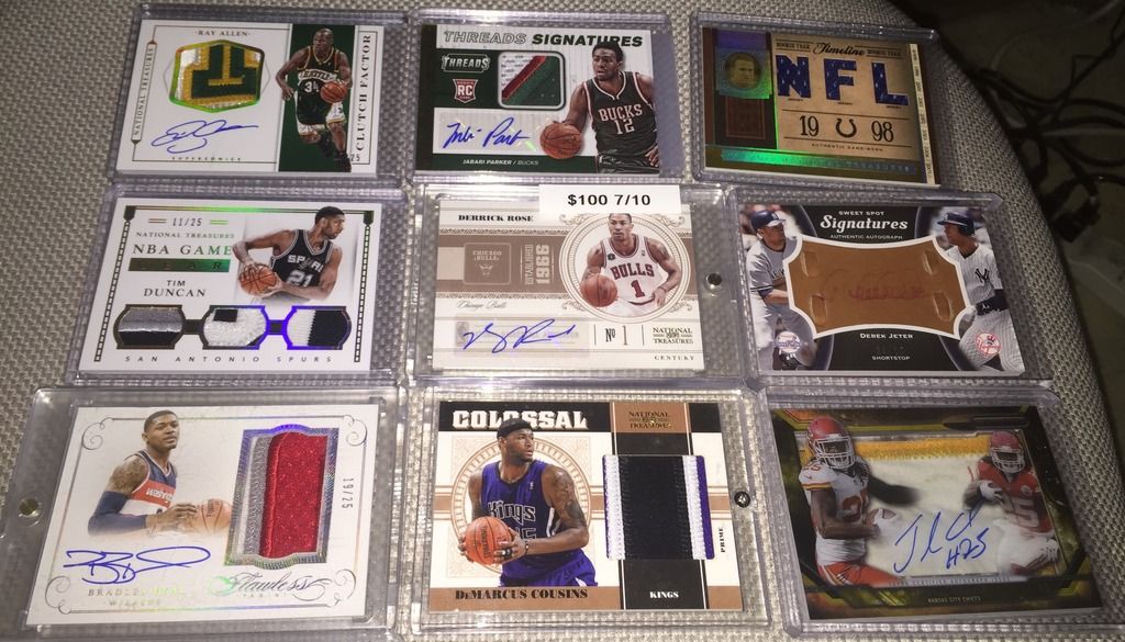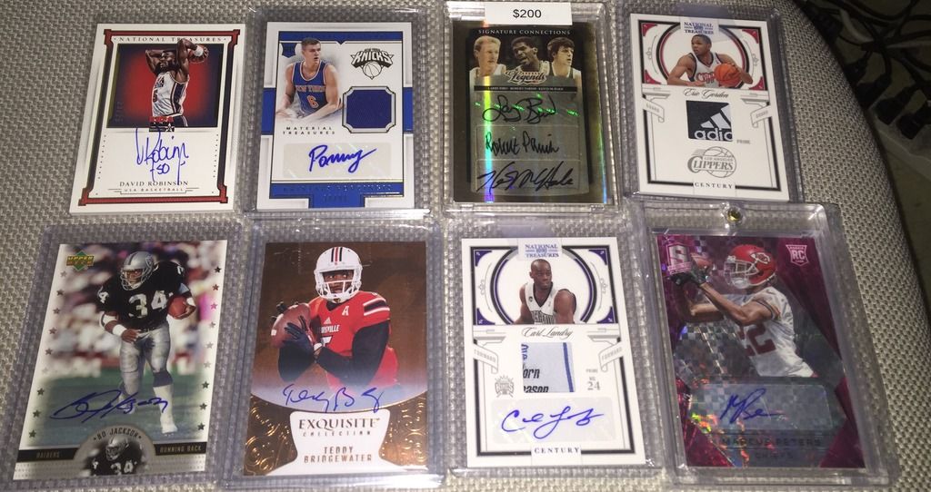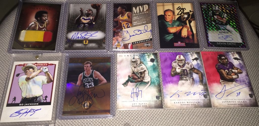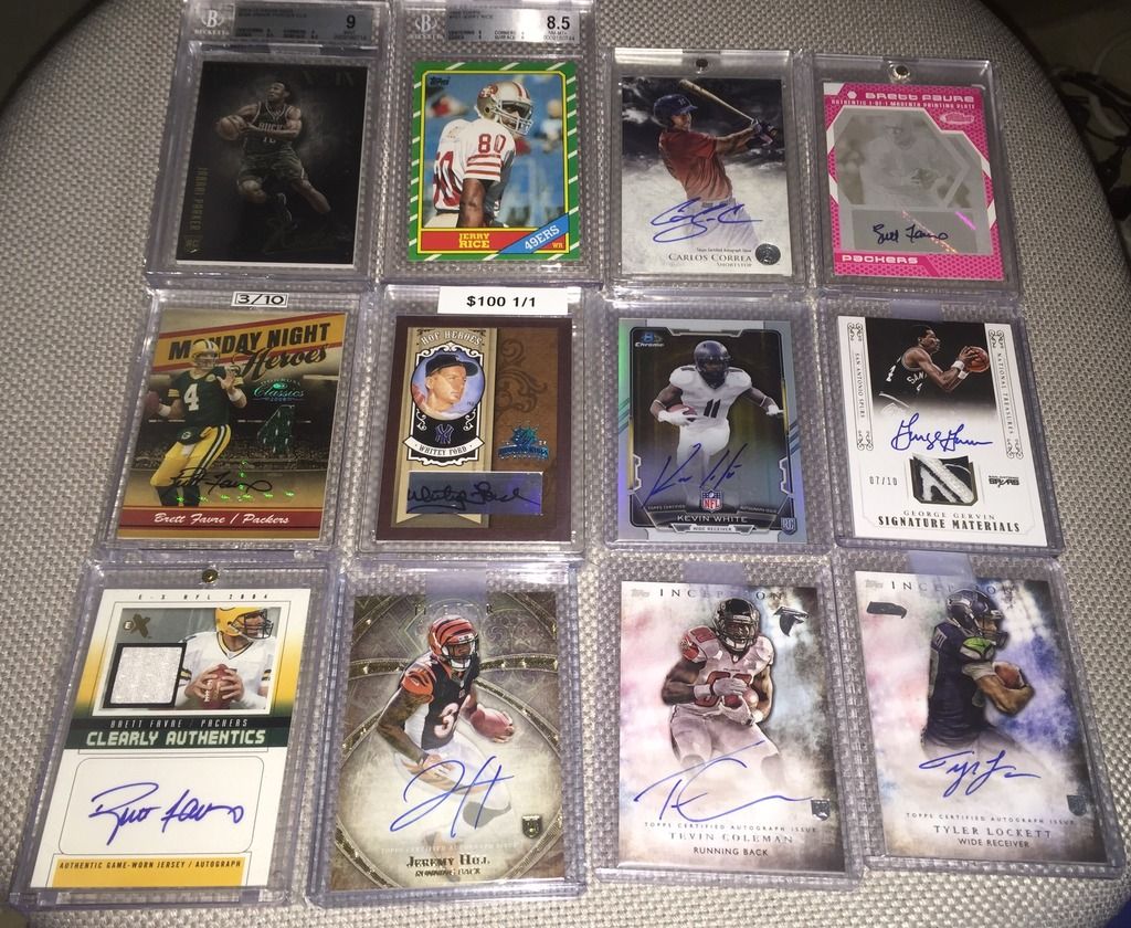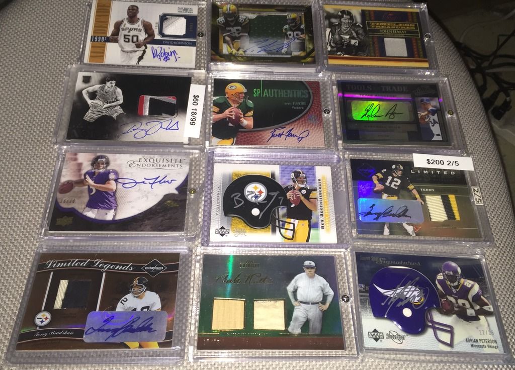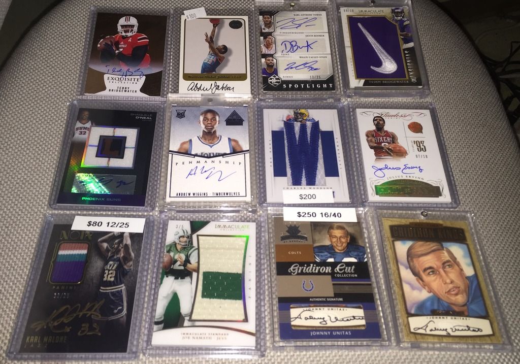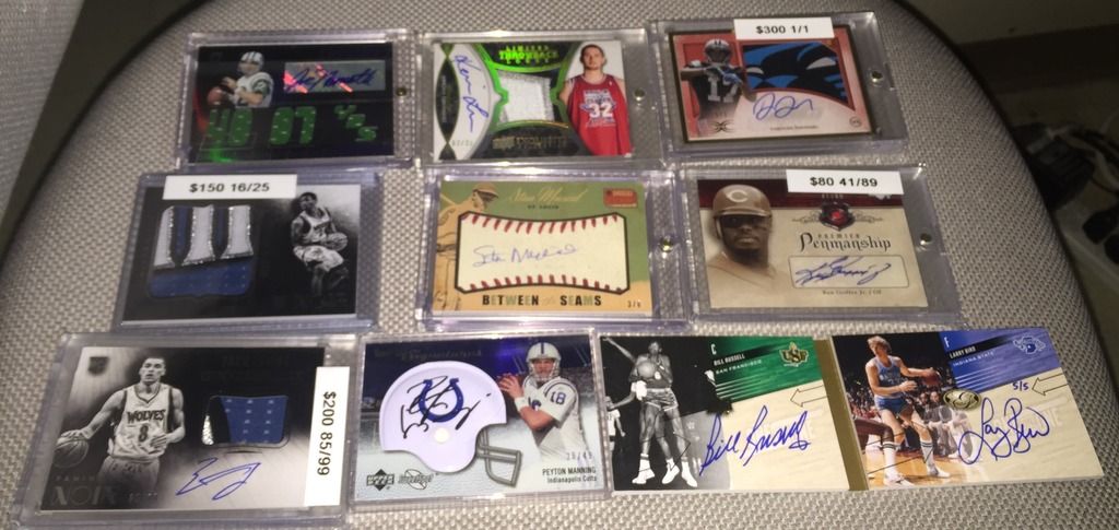 I like the following: Bird 14k auto Dr j flawless auto Brett Favre Ex jersey auto/90 Both Unitas autos Please check my thread and Lmk if u see anything u like. Thanks Jeff