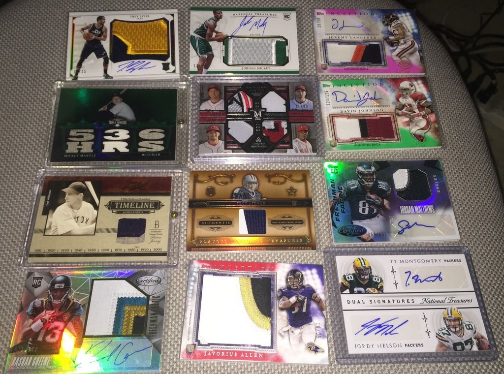 McDermott patch auto KAT triple auto Larry bird Auto Jabari Parker patch auto Please check my trade thread and or bucket thanks!