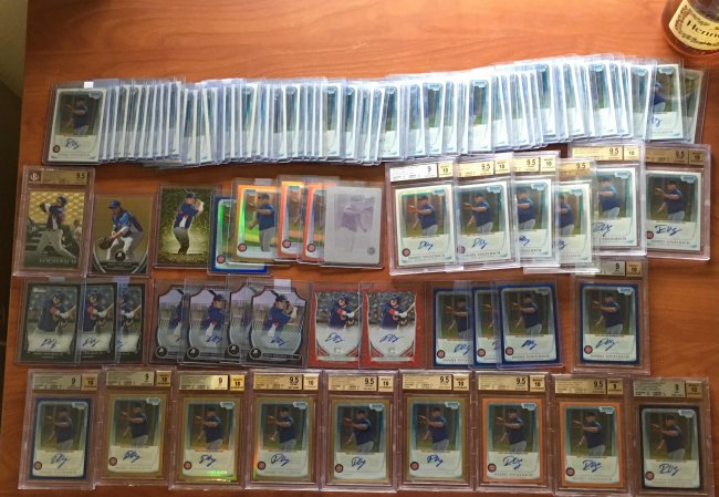 1 x 2011 Bowman Sterling Plate auto /1 1 x 2011 Bowman Sterling Gold Refractor auto /50 1 x 2011 Bowman Sterling Black Refractor auto /25 2 x 2011 Bowman Sterling Refractor auto /199 10 x 2011 Bowman Sterling auto 1 x 2011 Bowman Chrome Plate auto /1 1 x 2011 Bowman Chrome Red Refractor /5 3 x 2011 Bowman Chrome Blue Refractor auto /150 7 x 2011 Bowman Chrome Refractor auto /500 40 x 2011 Bowman Chrome auto 2 x 2011 Panini Prime Cuts Auto /99 2 x 2011 Panini Prime Cuts Auto /299 1 x 2011 Donruss Elite Yearbook /199 1 x 2013 Bowman Chrome Risin' Thru The Rank Auto /25 1 z 2014 Bowman Purple Auto /10
