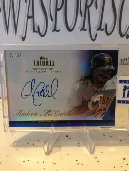 I have for sale a 2012 Tribute Auto of Andrew McCutchen /50. Case is still sealed. Bold on card signature. Not shipping to Canada. Please add $2.50 for shipping.