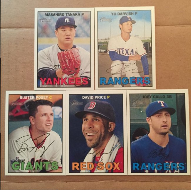 436 Masahiro Tanaka 443 Yu Darvish (small ding on bottom edge under N in Rangers) 460 Buster Posey 477 David Price 488 Joey Gallo All in nice shape other than the ding on the Darvish
