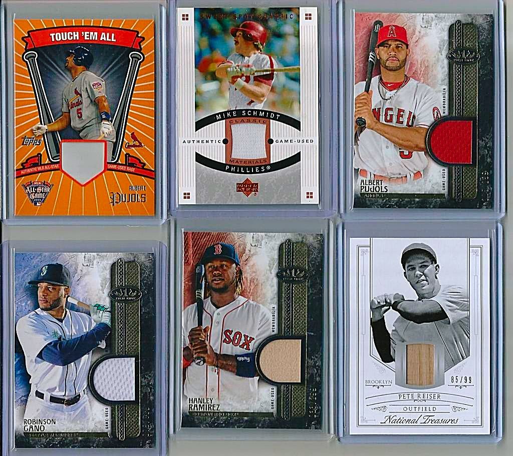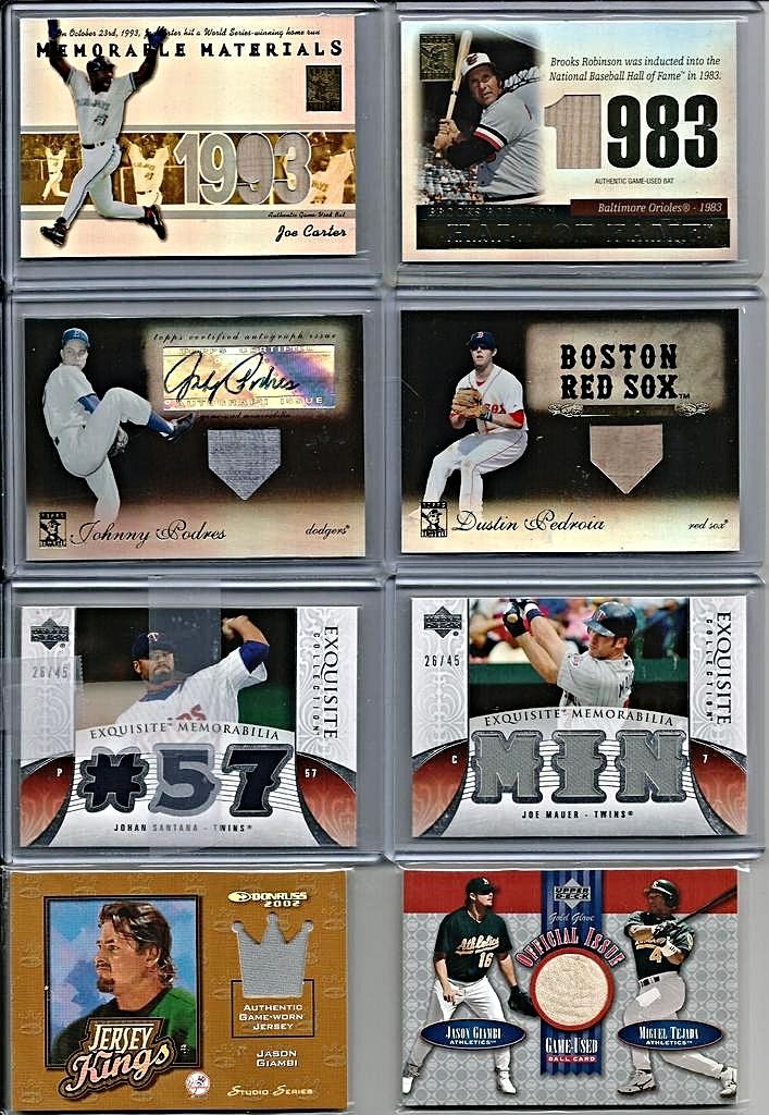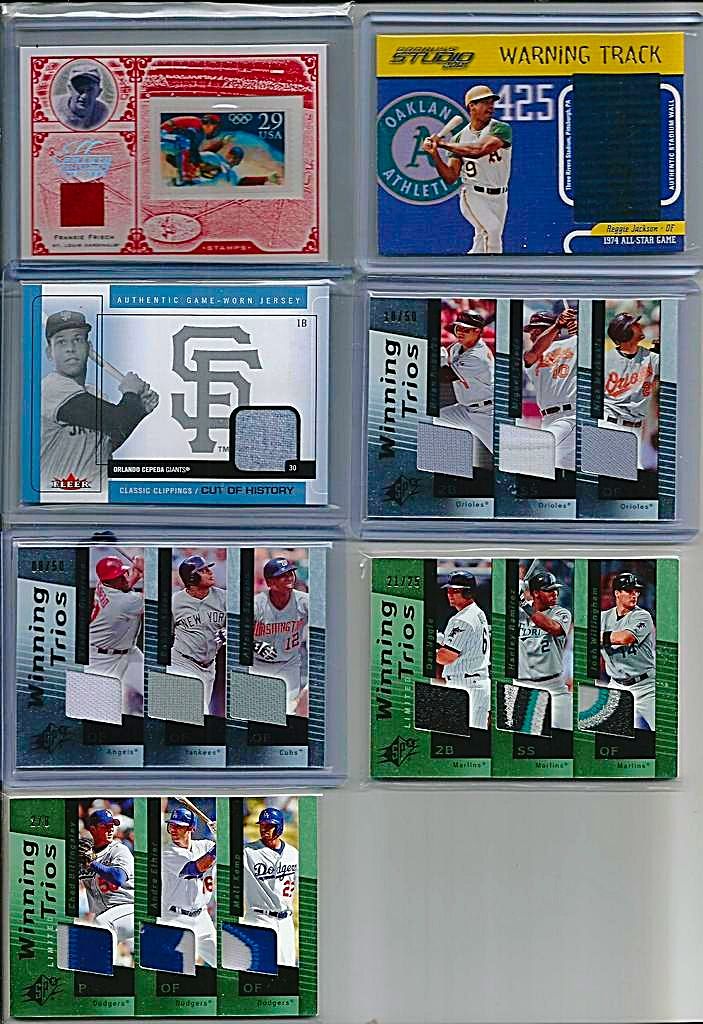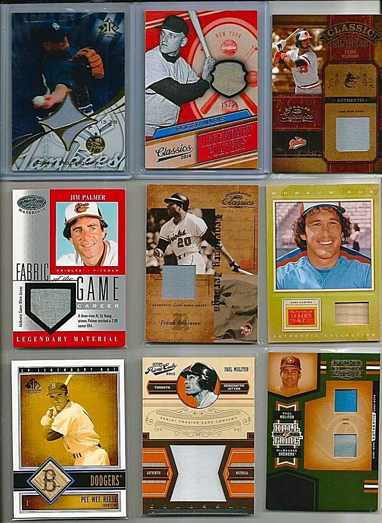 \A TON OF CARDS HAVE BEEN ADDED FROM PREVIOUS THREADS AND ALL PRICES LOWERED SCROLL THROUGH AND TAKE A LOOK!! IF THE CARD IS PICTURED BUT NOT LISTED IT IS NO LONGER AVAILABLE !! I WILL BE ADDING MORE NEW AND LOWERING MANY PRICES ON GREAT CARDS FROM MY PREVIOUS THREADS SO KEEP CHECKING BACK!! $3 SHIPPING NO MATTER HOW MANY YOU BUY - SHIPPED SECURELY IN BUBBLE MAILERS WITH TRACKING - PREFER PAYPAY - IF YOU WANT TO START A TAB THAT IS FINE JUST LMK(MANY OF MY BUYERS DO) Link to part 1 http://www.blowoutcards.com/forums/b...take-look.html link to part 3 http://www.blowoutcards.com/forums/b...take-look.html Football - http://www.blowoutcards.com/forums/f...autos-rcs.html Basketball - http://www.blowoutcards.com/forums/b...autos-rcs.html THANKS FOR LOOKING!! ![]() 2005 Upper Deck Lasting Legends Paul Molitor Game Used Bat 6/25 - $7 2001 Upper Deck Vintage Timeless Teams #OARJ Reggie Jackson Bat bv $15 - $5 2011 Topps Tier One Top Shelf Relics #TSR14 George Sisler - $7.50sold 2007 Exquisite Collection Rookie Signatures Reflections Autographs #JC James Shields/Chad Billingsley/40 bv $25 - $7 2014 Topps Class Rings Silver #CR18 Jackie Robinson - $4 2001 Upper Deck Ovation A Piece of History #BR Brooks Robinson bv $25 - $7 2002 Topps Reserve Uniform Relics #FT Frank Thomas C - $4sold 2002 Greats of the Game Through the Years Level 1 Patch #8 Reggie Jackson A's #20/100 nice patch BV $40 - $14sold ![]() 2009 Sweet Spot Signatures Red Stitch Blue Ink #MK Matt Kemp/199 bv $50 - $14 2003 Topps Tribute World Series Signature Relics #JP Jim Palmer Jsy D bv $40 - $13sold 2008 Upper Deck Yankee Stadium Legacy Collection Memorabilia #YB Yogi Berra - $10pending 2008 Upper Deck Yankee Stadium Legacy Collection Memorabilia #JA Reggie Jackson - $8 2008 Upper Deck Yankee Stadium Legacy Collection Memorabilia #MU Bobby Murcer bv $25 - $7sold 2008 Upper Deck Yankee Stadium Legacy Collection Memorabilia #GS Gary Sheffield - $4 2001 Upper Deck Minors Centennial Game Jersey #JNR Nolan Ryan bv $50 - $14 2012 Prime Cuts Biography Memorabilia #14 Lefty Williams/99 - $10 ![]() 2003 Topps Tribute Perennial All-Star Relics #RJ Reggie Jackson Bat O - $4 2014 Classics Legendary Players Materials #5 Elston Howard/99 bv $60 - $15sold 2016 Diamond Kings DK Minis Materials Framed #39 Jake Daubert/49 bv $25 - $9 2010 Topps National Chicle Relics Bazooka Back #PWR Pee Wee Reese bv $15 - $6 2013 Panini America's Pastime Combo Swatches #5 Yasiel Puig/125 bv $30 - $8 2008 Prime Cuts Signature Century #37 George Kell/99 auto - $11sold ![]() 2016 Topps Tier One Relics #T1RAPU Albert Pujols/299 - $4sold 2016 Topps Tier One Relics #T1RRCA Robinson Cano/369 - $2 2016 Topps Tier One Relics #T1RHR Hanley Ramirez/299 - $1.50sold 2015 Panini National Treasures Career Year Materials #41 Pete Reiser/99 - $4 2005 Topps Update Touch Em All Base Relics #AP Albert Pujols bv $30 - $11sold 2005 Sweet Spot Classic Materials #MS M.Schmidt Hitting Jsy - $5 ![]() 2002 Upper Deck Diamond Connection Bat Around Quads #GSGB Shawn Green/Sammy Sosa/Ken Griffey Jr./Pat Burrell bv $25 - $8 2007 UPPER DECK PREMIER REMNANTS TRIPLE JERSEY GOLD #KG2 KEN GRIFFEY JR. 15/56 - $13 2007 Upper Deck Premier Stitchings 35 #22 Ken Griffey Jr. bv $40 - $15 2007 Upper Deck Premier Stitchings #23 Ken Griffey Jr. bv $40 - $15 2013 Topps Manufactured Commemorative Rookie Patch #RCP19 Ken Griffey Jr. bv $30 - $10 2001 SP Game Bat Milestone Piece of Action Quads #GDBS Griffey/Drew/Burn/Sosa bv $50 - $15 2008 Upper Deck Ballpark Collection #324 Ken Griffey Jr./Prince Fielder/Geoff Jenkins/Chad Tracy/David Ortiz/Nick Markakis/Garret Anderson/Eric Chavez bv $40 - $15 2001 SPx Winning Materials Update Trios #BGG Barry Bonds/Luis Gonzalez/Ken Griffey Jr. bv $30 - $10 ![]() 2002 Fleer Triple Crown Home Run Kings Game Used #13 Alex Rodriguez Bat - $4 2002 Topps Archives Game Used Jersey Dave Winfield - $3 2005 Playoff Prestige Stars of MLB Material Jersey #7 Miguel Cabrera - $3sold 2002 Fleer Fall Classics October Legends Game Used #EM Eddie Murray Jsy - $5 2009 Topps Triple Threads Sepia #105 Cameron Maybin Jsy AU /75 bv $20 - $6 ![]() ![]() 2008 Upper Deck Yankee Stadium Legacy Collection Memorabilia #WR Willie Randolph bv $40 - $11sold 2008 Upper Deck Yankee Stadium Legacy Collection Memorabilia #PO Jorge Posada bv $25 - $8sold 2008 Upper Deck Yankee Stadium Legacy Collection Memorabilia #ON Paul O'Neill bv $40 - $12sold 2008 Upper Deck Yankee Stadium Legacy Collection Memorabilia #GN Graig Nettles bv $30 - $10sold 2008 Upper Deck Yankee Stadium Legacy Collection Memorabilia #MU Bobby Murcer bv $25 - $8sold 2008 Upper Deck Yankee Stadium Legacy Collection Memorabilia #RM Roger Maris bv $50 - $22sold 2008 Upper Deck Yankee Stadium Legacy Collection Memorabilia #DJ Derek Jeter bv $40 - $17sold 1997 UD3 Superb Signatures #1 Ken Caminiti auto- bv $50 - $22 2009-10 Upper Deck Champ's Hall of Legends Memorabilia #HLNR Nolan Ryan bv $60 - $22 2013 Topps Museum Collection Signature Swatches Triple Relic Autographs #BB Billy Butler/299 bv $20 - $6 2013 Topps Museum Collection Signature Swatches Triple Relic Autographs Platinum #BB Billy Butler #4/5 Rare - $14sold 2013 Topps Museum Collection Canvas Collection #25 George Brett - $1sold ![]() 2002 Greats of the Game Autographs #MW Maury Wills - $6sold 2007 Upper Deck Premier Emerging Stars Autographs Dual #UR Dan Uggla/Hanley Ramirez bv $50 - $12 1999 Upper Deck Century Legends Epic Signatures #VG Vladimir Guerrero bv $30 - $12pending pwaldo 2006 Flair Showcase Stitches #AP Albert Pujols Pants bv $20 - $7sold 2006 Upper Deck Epic Endorsements #BG Bob Gibson/30 bv $60 - $25pending pwaldo 2015 DOUG HARVEY PANINI COOPERSTOWN AUTOGRAPH #15 /49 - $4pending pwaldo 2011 Limited Materials #16 Dwight Gooden/149 - $3 sold ![]() 2013 Topps Museum Collection Primary Pieces Quad Relics Copper #MH Matt Holliday bv $20 - $5 sold 2010 Panini Century Postcards Materials Prime Autographs #1 Andre Dawson/50 - $9pending pwaldo 2013 Topps Museum Collection Momentous 