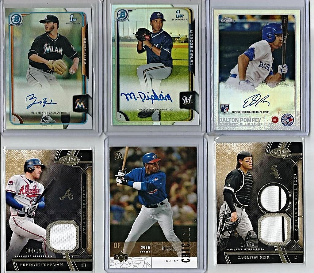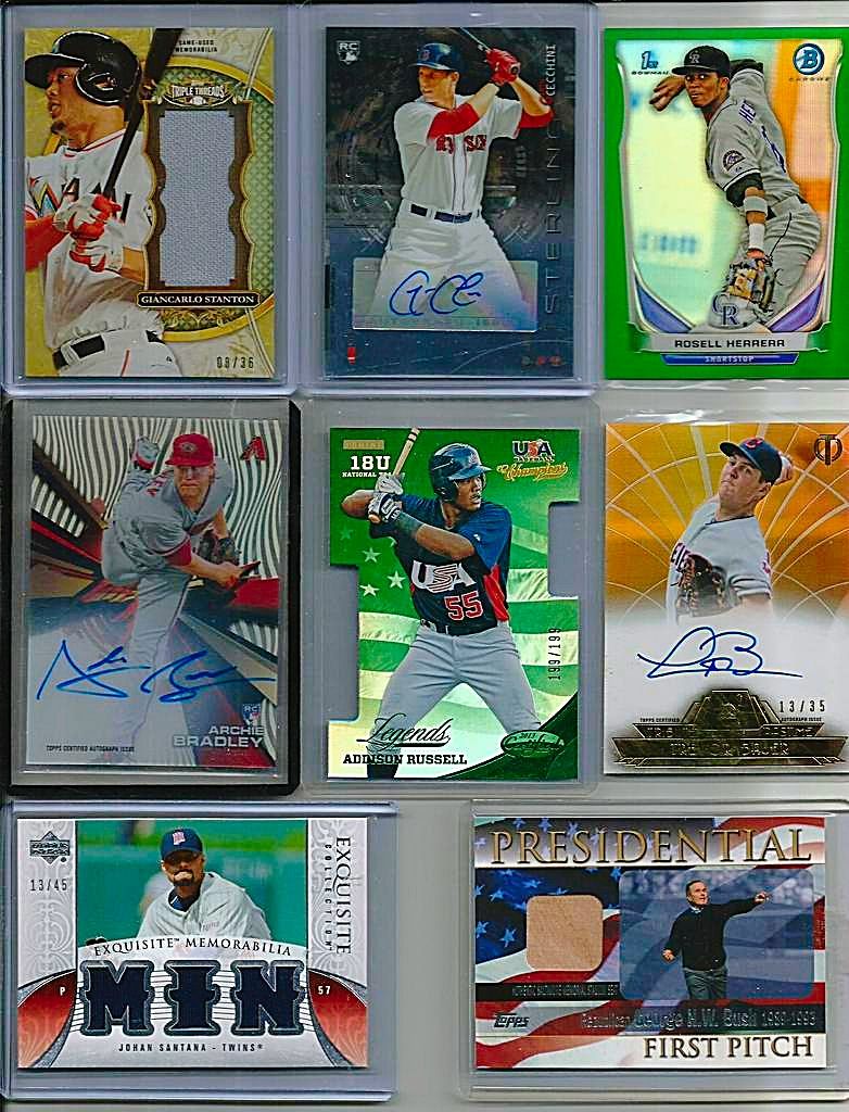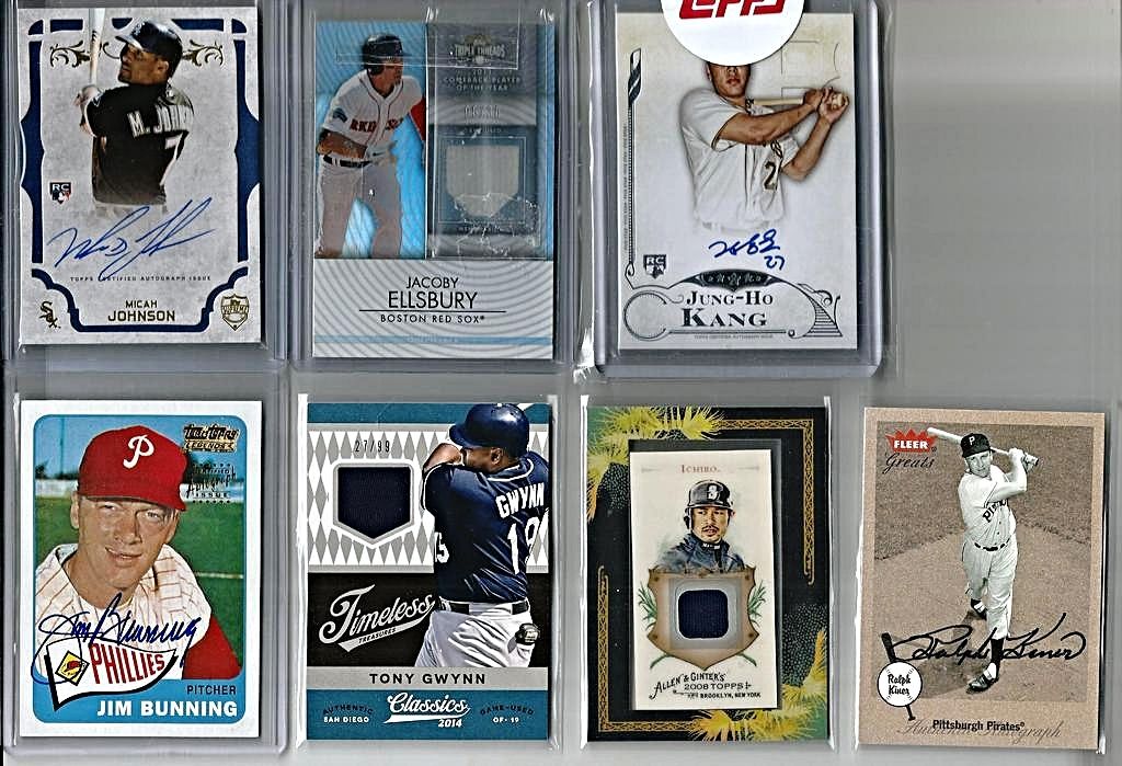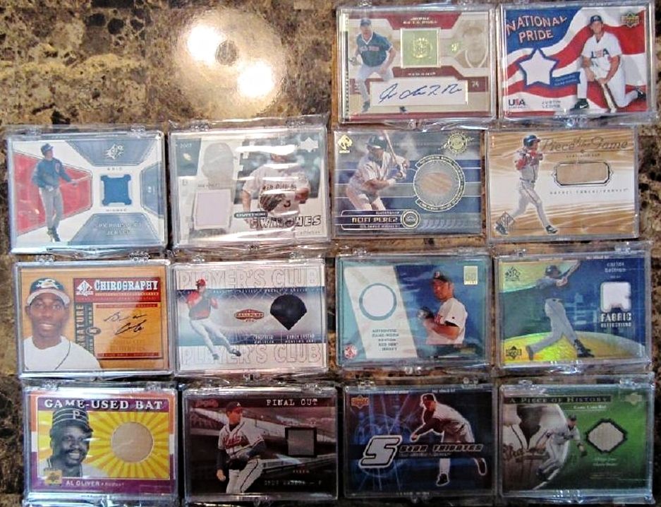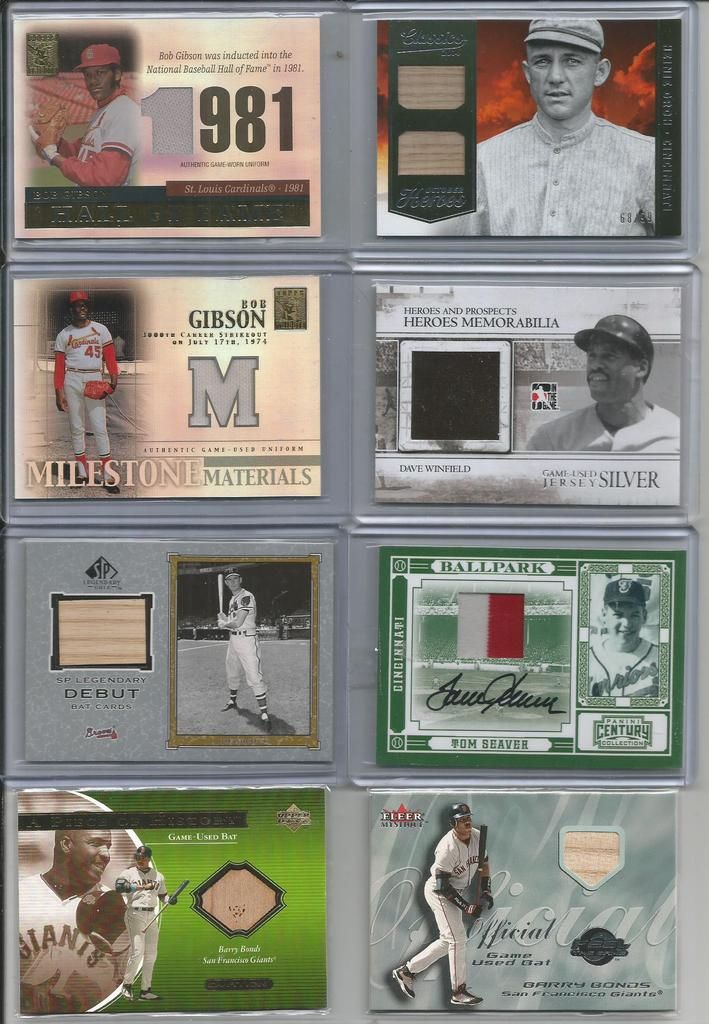 \A TON OF CARDS HAVE BEEN ADDED FROM PREVIOUS THREADS AND ALL PRICES LOWERED SCROLL THROUGH AND TAKE A LOOK!! IF THE CARD IS PICTURED BUT NOT LISTED IT IS NO LONGER AVAILABLE !! I WILL BE ADDING MORE NEW AND LOWERING MANY PRICES ON GREAT CARDS FROM MY PREVIOUS THREADS SO KEEP CHECKING BACK!! $3 SHIPPING NO MATTER HOW MANY YOU BUY - SHIPPED SECURELY IN BUBBLE MAILERS WITH TRACKING - PREFER PAYPAY - IF YOU WANT TO START A TAB THAT IS FINE JUST LMK(MANY OF MY BUYERS DO) Link to part 1 http://www.blowoutcards.com/forums/b...take-look.html link to part 3 http://www.blowoutcards.com/forums/b...take-look.html Football - http://www.blowoutcards.com/forums/f...autos-rcs.html Basketball - http://www.blowoutcards.com/forums/b...autos-rcs.html THANKS FOR LOOKING!! ![]() 2005 Upper Deck Lasting Legends Paul Molitor Game Used Bat 6/25 - $7 2001 Upper Deck Vintage Timeless Teams #OARJ Reggie Jackson Bat bv $15 - $5 2011 Topps Tier One Top Shelf Relics #TSR14 George Sisler - $7.50sold 2007 Exquisite Collection Rookie Signatures Reflections Autographs #JC James Shields/Chad Billingsley/40 bv $25 - $7 2014 Topps Class Rings Silver #CR18 Jackie Robinson - $4 2001 Upper Deck Ovation A Piece of History #BR Brooks Robinson bv $25 - $7 2002 Topps Reserve Uniform Relics #FT Frank Thomas C - $4sold 2002 Greats of the Game Through the Years Level 1 Patch #8 Reggie Jackson A's #20/100 nice patch BV $40 - $14sold ![]() 2009 Sweet Spot Signatures Red Stitch Blue Ink #MK Matt Kemp/199 bv $50 - $14 2003 Topps Tribute World Series Signature Relics #JP Jim Palmer Jsy D bv $40 - $13sold 2008 Upper Deck Yankee Stadium Legacy Collection Memorabilia #YB Yogi Berra - $10pending 2008 Upper Deck Yankee Stadium Legacy Collection Memorabilia #JA Reggie Jackson - $8 2008 Upper Deck Yankee Stadium Legacy Collection Memorabilia #MU Bobby Murcer bv $25 - $7sold 2008 Upper Deck Yankee Stadium Legacy Collection Memorabilia #GS Gary Sheffield - $4 2001 Upper Deck Minors Centennial Game Jersey #JNR Nolan Ryan bv $50 - $14 2012 Prime Cuts Biography Memorabilia #14 Lefty Williams/99 - $10 ![]() 2003 Topps Tribute Perennial All-Star Relics #RJ Reggie Jackson Bat O - $4 2014 Classics Legendary Players Materials #5 Elston Howard/99 bv $60 - $15sold 2016 Diamond Kings DK Minis Materials Framed #39 Jake Daubert/49 bv $25 - $9 2010 Topps National Chicle Relics Bazooka Back #PWR Pee Wee Reese bv $15 - $6 2013 Panini America's Pastime Combo Swatches #5 Yasiel Puig/125 bv $30 - $8 2008 Prime Cuts Signature Century #37 George Kell/99 auto - $11sold ![]() 2016 Topps Tier One Relics #T1RAPU Albert Pujols/299 - $4sold 2016 Topps Tier One Relics #T1RRCA Robinson Cano/369 - $2 2016 Topps Tier One Relics #T1RHR Hanley Ramirez/299 - $1.50sold 2015 Panini National Treasures Career Year Materials #41 Pete Reiser/99 - $4 2005 Topps Update Touch Em All Base Relics #AP Albert Pujols bv $30 - $11sold 2005 Sweet Spot Classic Materials #MS M.Schmidt Hitting Jsy - $5 ![]() 2002 Upper Deck Diamond Connection Bat Around Quads #GSGB Shawn Green/Sammy Sosa/Ken Griffey Jr./Pat Burrell bv $25 - $8 2007 UPPER DECK PREMIER REMNANTS TRIPLE JERSEY GOLD #KG2 KEN GRIFFEY JR. 15/56 - $13 2007 Upper Deck Premier Stitchings 35 #22 Ken Griffey Jr. bv $40 - $15 2007 Upper Deck Premier Stitchings #23 Ken Griffey Jr. bv $40 - $15 2013 Topps Manufactured Commemorative Rookie Patch #RCP19 Ken Griffey Jr. bv $30 - $10 2001 SP Game Bat Milestone Piece of Action Quads #GDBS Griffey/Drew/Burn/Sosa bv $50 - $15 2008 Upper Deck Ballpark Collection #324 Ken Griffey Jr./Prince Fielder/Geoff Jenkins/Chad Tracy/David Ortiz/Nick Markakis/Garret Anderson/Eric Chavez bv $40 - $15 2001 SPx Winning Materials Update Trios #BGG Barry Bonds/Luis Gonzalez/Ken Griffey Jr. bv $30 - $10 ![]() 2002 Fleer Triple Crown Home Run Kings Game Used #13 Alex Rodriguez Bat - $4 2002 Topps Archives Game Used Jersey Dave Winfield - $3 2005 Playoff Prestige Stars of MLB Material Jersey #7 Miguel Cabrera - $3sold 2002 Fleer Fall Classics October Legends Game Used #EM Eddie Murray Jsy - $5 2009 Topps Triple Threads Sepia #105 Cameron Maybin Jsy AU /75 bv $20 - $6 ![]() ![]() 2008 Upper Deck Yankee Stadium Legacy Collection Memorabilia #WR Willie Randolph bv $40 - $11sold 2008 Upper Deck Yankee Stadium Legacy Collection Memorabilia #PO Jorge Posada bv $25 - $8sold 2008 Upper Deck Yankee Stadium Legacy Collection Memorabilia #ON Paul O'Neill bv $40 - $12sold 2008 Upper Deck Yankee Stadium Legacy Collection Memorabilia #GN Graig Nettles bv $30 - $10sold 2008 Upper Deck Yankee Stadium Legacy Collection Memorabilia #MU Bobby Murcer bv $25 - $8sold 2008 Upper Deck Yankee Stadium Legacy Collection Memorabilia #RM Roger Maris bv $50 - $22sold 2008 Upper Deck Yankee Stadium Legacy Collection Memorabilia #DJ Derek Jeter bv $40 - $17sold 1997 UD3 Superb Signatures #1 Ken Caminiti auto- bv $50 - $22 2009-10 Upper Deck Champ's Hall of Legends Memorabilia #HLNR Nolan Ryan bv $60 - $22 2013 Topps Museum Collection Signature Swatches Triple Relic Autographs #BB Billy Butler/299 bv $20 - $6 2013 Topps Museum Collection Signature Swatches Triple Relic Autographs Platinum #BB Billy Butler #4/5 Rare - $14sold 2013 Topps Museum Collection Canvas Collection #25 George Brett - $1sold ![]() 2002 Greats of the Game Autographs #MW Maury Wills - $6sold 2007 Upper Deck Premier Emerging Stars Autographs Dual #UR Dan Uggla/Hanley Ramirez bv $50 - $12 1999 Upper Deck Century Legends Epic Signatures #VG Vladimir Guerrero bv $30 - $12pending pwaldo 2006 Flair Showcase Stitches #AP Albert Pujols Pants bv $20 - $7sold 2006 Upper Deck Epic Endorsements #BG Bob Gibson/30 bv $60 - $25pending pwaldo 2015 DOUG HARVEY PANINI COOPERSTOWN AUTOGRAPH #15 /49 - $4pending pwaldo 2011 Limited Materials #16 Dwight Gooden/149 - $3 sold ![]() 2013 Topps Museum Collection Primary Pieces Quad Relics Copper #MH Matt Holliday bv $20 - $5 sold 2010 Panini Century Postcards Materials Prime Autographs #1 Andre Dawson/50 - $9pending pwaldo 2013 Topps Museum Collection Momentous 