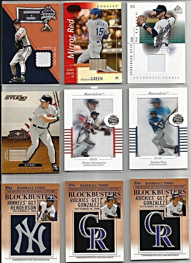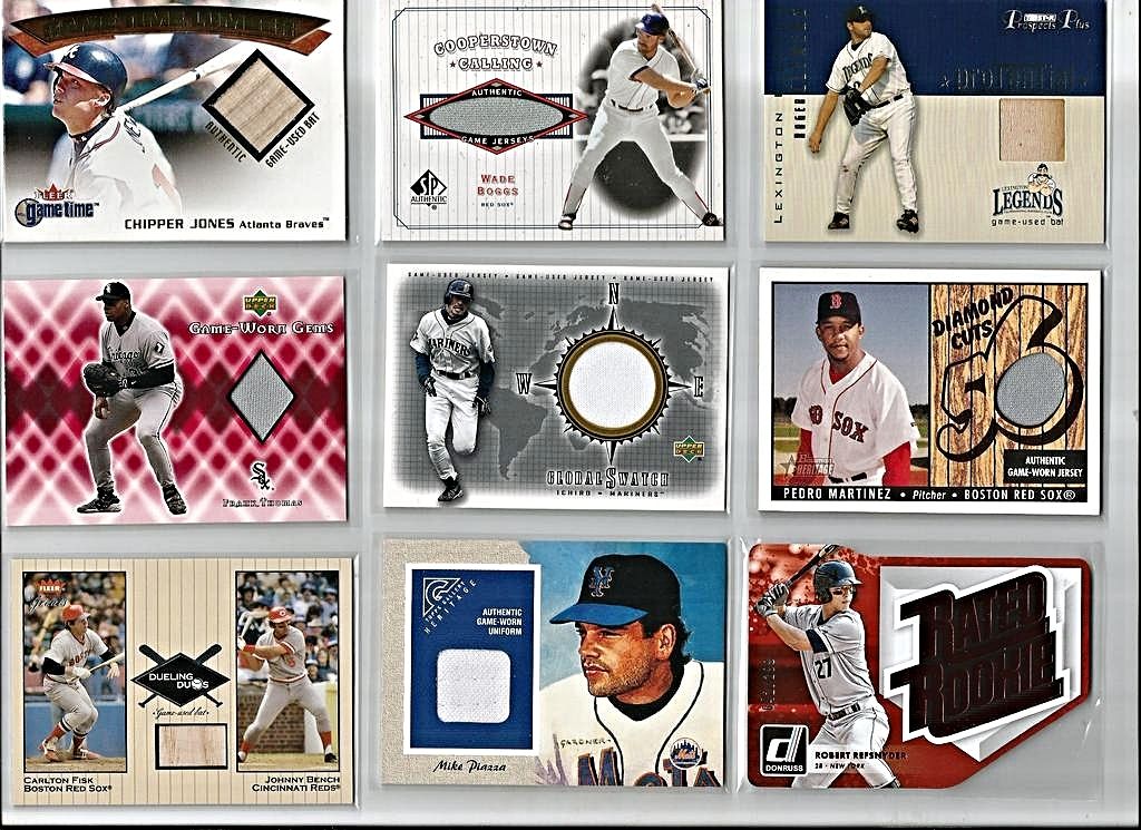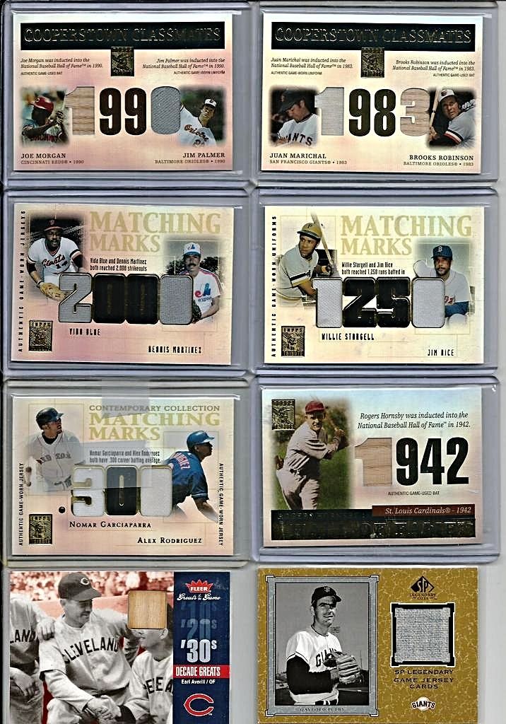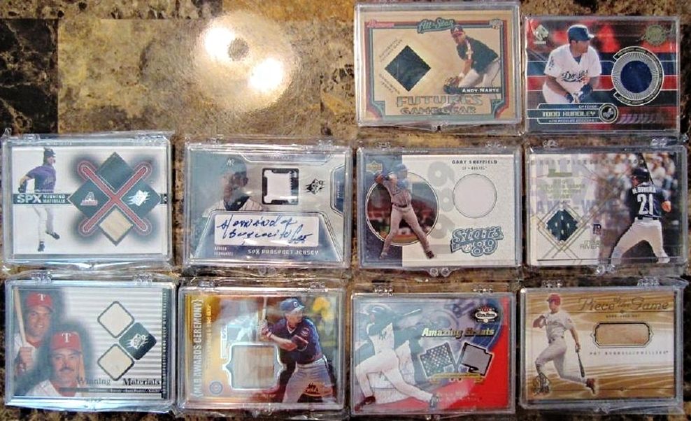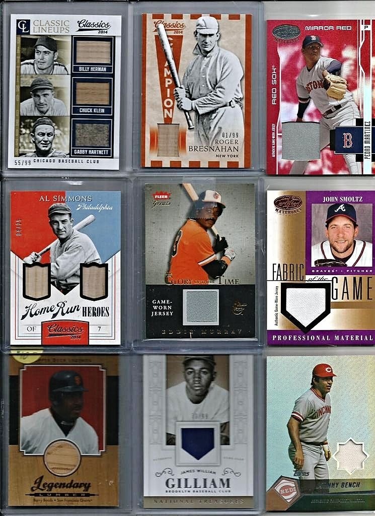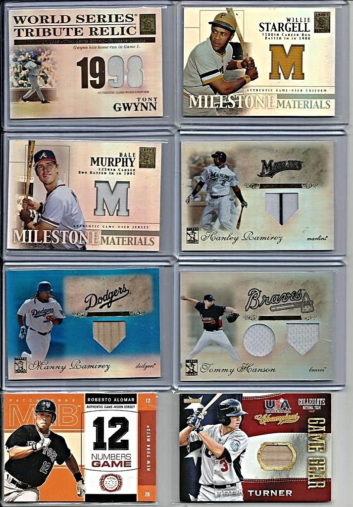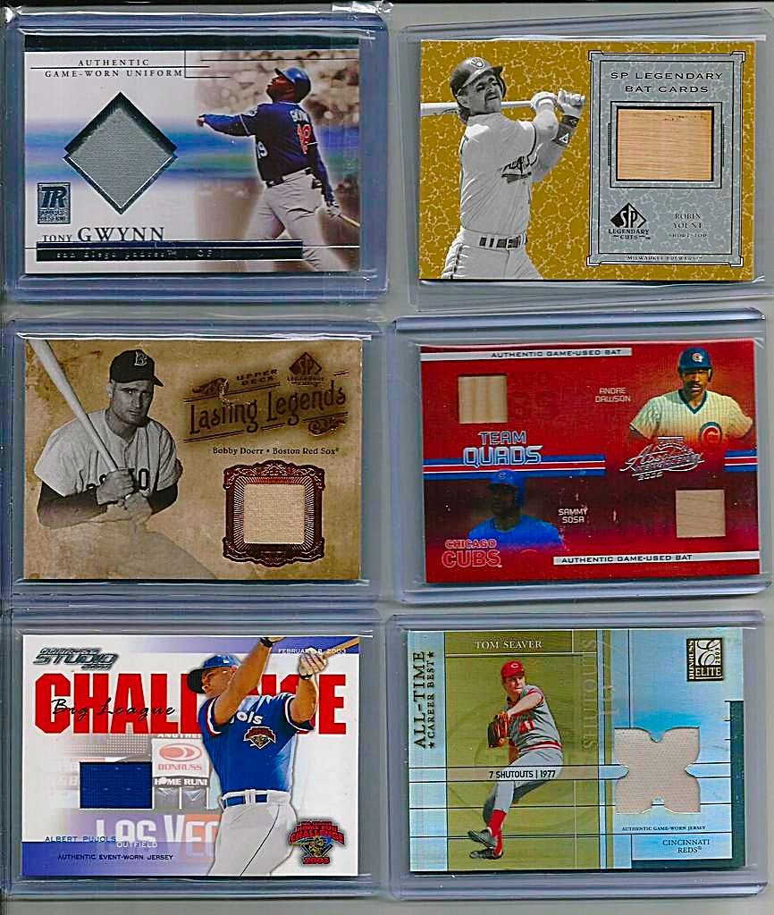 2005 Absolute Memorabilia Team Quads Swatch Single Spectrum #30 Chicago Cubs/100 - $6 2002 Topps Gold Label MLB Awards Ceremony Relics Platinum #TG2 Tony Gwynn BTG Jsy - $4.50 2005 Donruss Classics Home Run Heroes Materials #26 Billy Williams Bat-Jsy#12/26 - $7 2008 Donruss Threads Generations Materials #2 Eddie Murray/Cal Ripken Jr./100 BV $40 - $12 2001 Upper Deck MVP Game Souvenirs Batting Glove #GKG Ken Griffey Jr. - $10 2005 Prime Patches Hall of Fame Materials Double Swatch #3 Paul Molitor Jsy-Pants/150 - $3 2008 UD A Piece of History Stadium Scenes Jersey Red #SS6 David Ortiz- $3 2000 Upper Deck Legends Legendary Game Jerseys #JWB Wade Boggs - $4 |