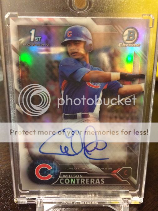 SOLD: I have this 2016 Bowman Chrome Willson Contreras refractor auto numbered 195/499. Will grade 9.5/10 I'm confident. Price: $75 shipped (in magnetic with tracking). Thanks - Mike