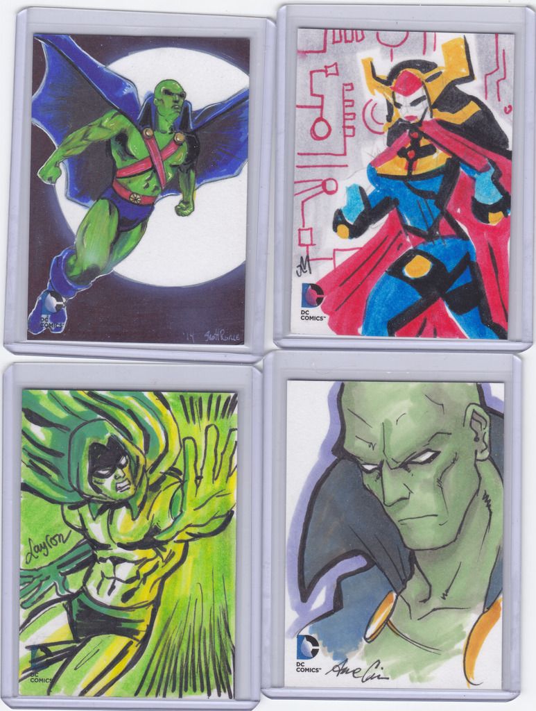 Very fun break! I got everything advertised, 6 metal cards, 4 bronze per box, 2 golds /75 per box, and the usual inserts. Really wish I would have pulled the Harley Quinn Relic, but the odds are tough on those. Here are the sketches! One of the boxes had a 2 piece sketch, which looks really good! Thanks! ![]()