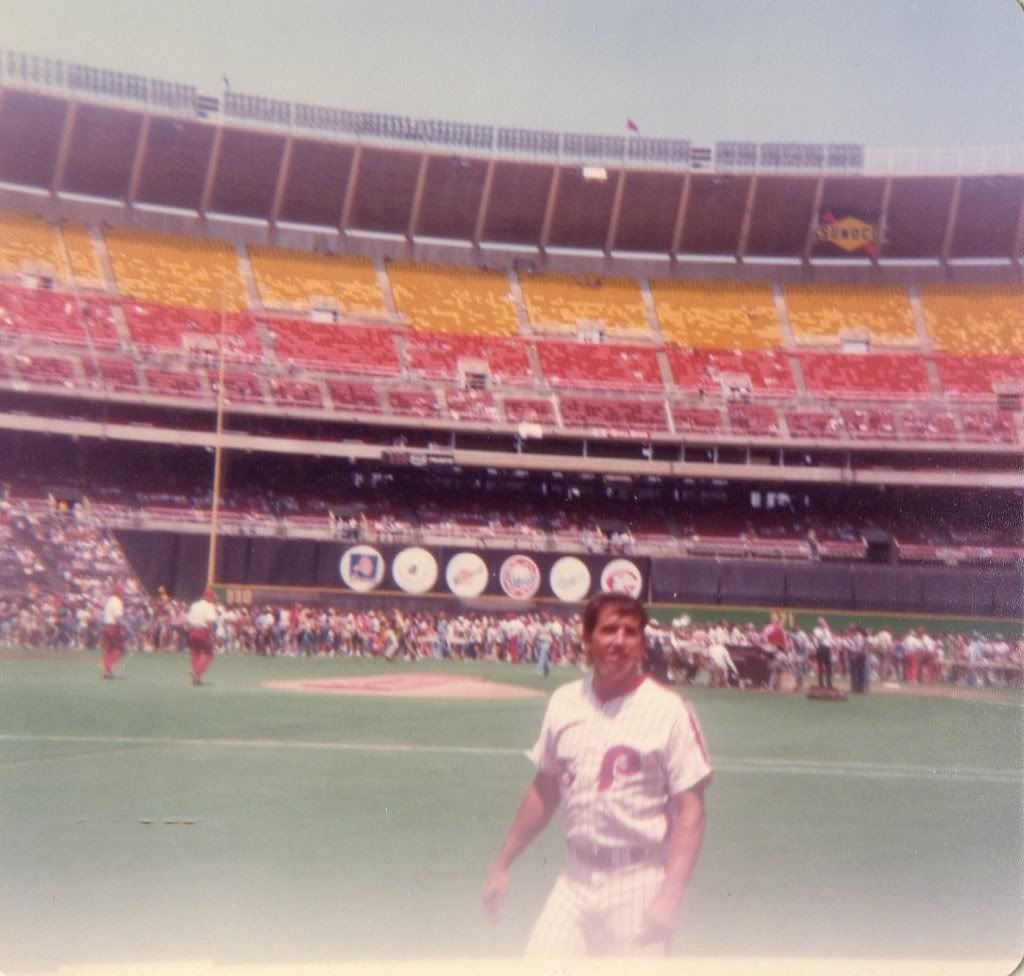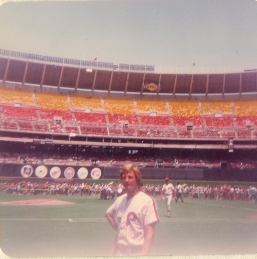 The Vet was such a magical place when I was a kid in the 70s. The bright seats in the upper deck were so much nicer than the dull blue they put in later. The giant circular NL logos, and eventually the retired numbers. The green water fountain. And the football bleacher seats behind the outfield fence. Every once in a while a homer would be hit off them, which I thought was cool, for some reason. We didn't have a camera, or I never thought to bring one, but I always had my glove, no matter where we sat.