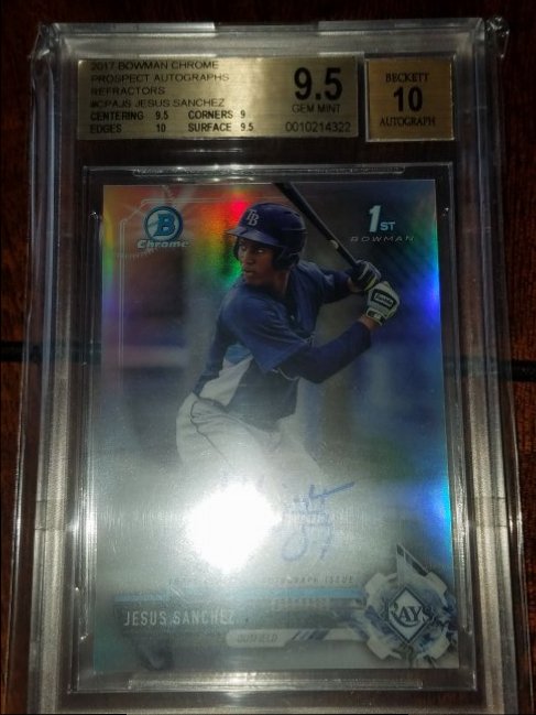 Have 2 Jesus Sanchez bowman chrome BGS 9.5 10 autos for sale. I have a base and a refractor. Looking to move as a pair. Here is the refractor will get a picture of the base up later. (Please post if the picture doesn't show up. I am using a new imaging site and not sure if I am doing it right). Looking for 230 dlvd for the pair.