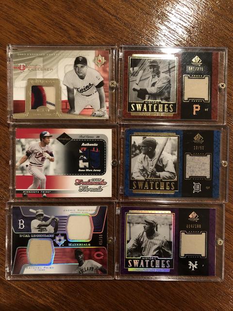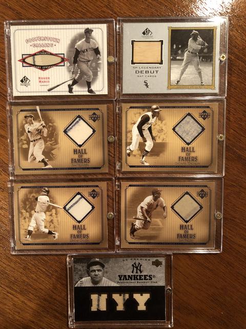 Here’s a few of my faves from my collection. Not as extensive as yours, but close. I left the hobby over 10 years ago and was excited to find so many “new” HOF players with memorabilia cards for really cheap! Then I noticed that the card no longer states that the item was used by the player or even what the item was (is the wood chip from a bat or stadium seat? Was the player ever in the same zip code as the item? No clue...). So, sadly, I won’t be adding to my collection. Love what I picked up all those years ago...