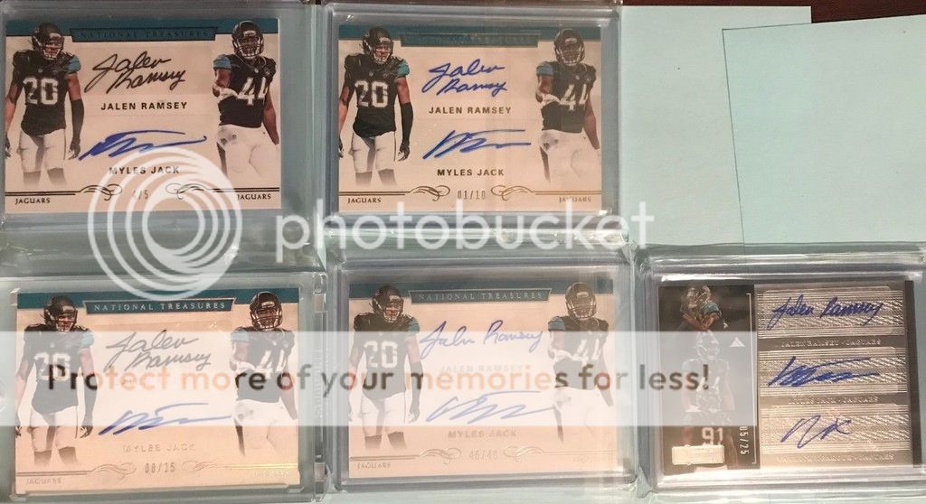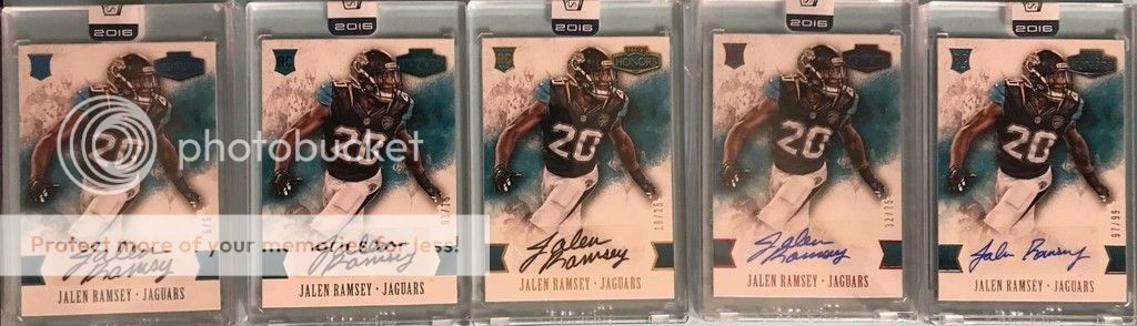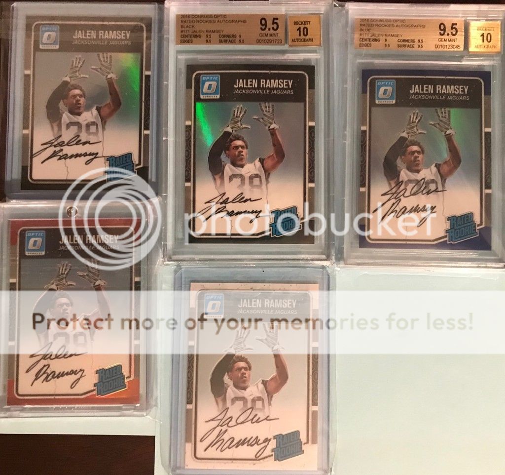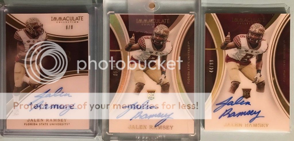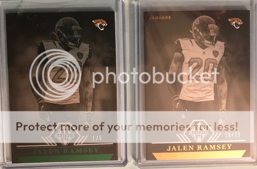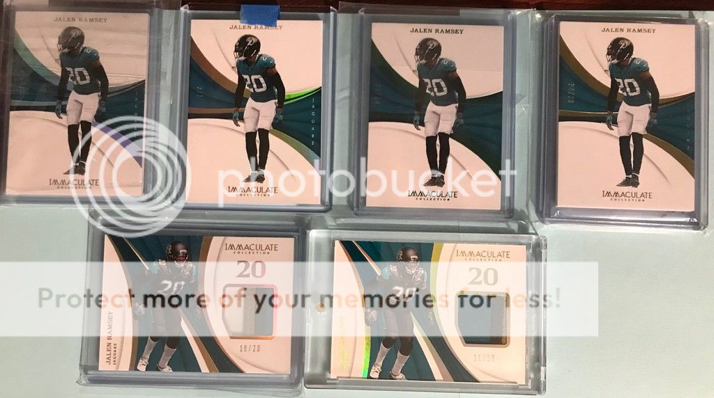Hi all, so about a year ago I got back in collecting for the 1st time since I was a kid. One of the main athletes I wanted to go after was Jalen Ramsey. It wasn't easy to decide to try and super collect him, as I started over a year after his rookie season, which put me at a huge disadvantage but I decided to go for it. Here's some of the rainbow's I am going after, if you have anything rare (auto/non-auto) that you see I don't have, I would appreciate it so much if you reached out and gave me a chance to offer you $ or a trade for it! In the short year back in the hobby, I've met some really cool people that have helped along the way - shout out to you guys. Even if you have something I don't have, and are unwilling to move it, would really appreciate even just a msg so I know what's out there or not. Thanks! ![]() NEED - BOUNTY for any of the Cracked Ice /24 Auto's (Aware of the 1 on eBay) NEED - BOUNTY for either of the (2) 1/1 printing plate auto's that I don't have Cyan or Yellow BUYING - Some more /25's and /49's if the price is right ![]() BUYING - Believe I only need the /75 and /99 ![]() ![]() ![]() ![]() ![]() ![]() ![]() ![]() ![]() ![]() ![]() ![]() ![]() ![]() ![]() ![]() ![]() ![]() ![]()