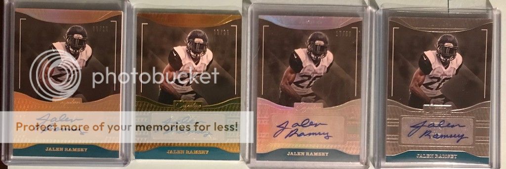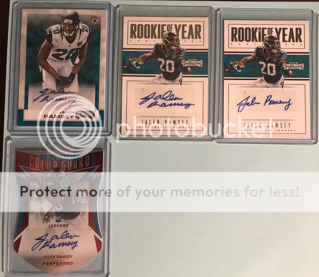 Always Buying - Jalen Ramsey Rare Auto's/Low #'d Stuff - Jalen Ramsey / Jose Fernandez / Fred Taylor / Griffey Mariner Auto's & 90's Inserts Last edited by cardscc1990; 02-02-2019 at 04:42 PM. |