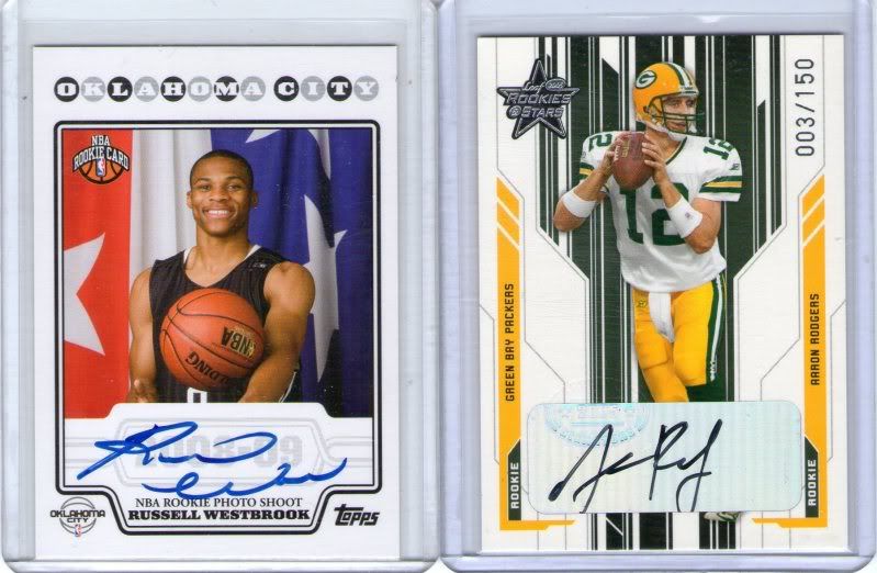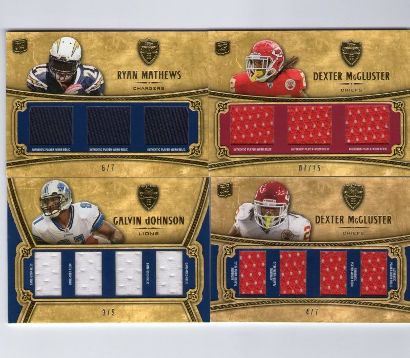 Aaron Rodgers Leaf Rookies and Stars Rookie Auto #/150 Russell Westbrook Topps Rookie Photo Shoot Supreme Hits Armanti Edwards Auto #1/1 Brandon LaFell Jumbo Jersey Auto #/3 Joe Namath Dual Jersey Auto #/25 Eric Berry Auto #/15 Ryan Mathews Triple Jersey #/7 Dexter McCluster Triple Jersey #/15 Dexter McCluster Quad Jersey #/7 Calvin Johnson Quad Jersey #/5 ![]() ![]()
