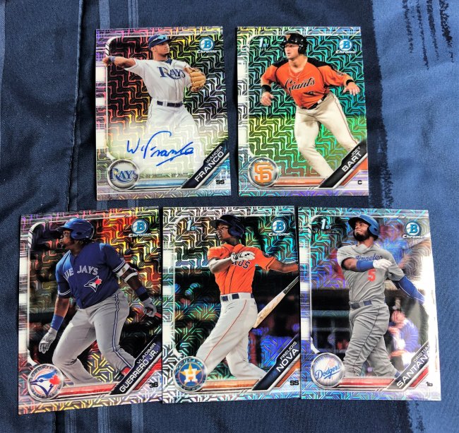 2 Wander Mojo Mize SSP image variation Green Mojo mountcastle Auto cristian Santana And then decent other base mojos. Not complaining but hopefully it’ll be wandrrful after the 20 coming tomorrow or the 40 after that... |