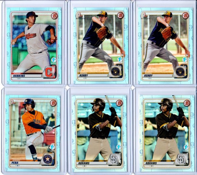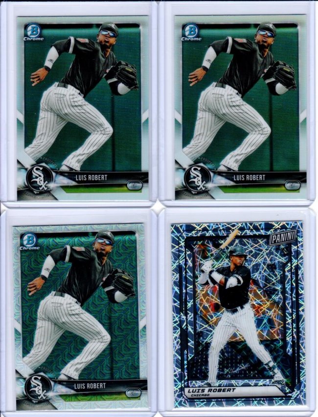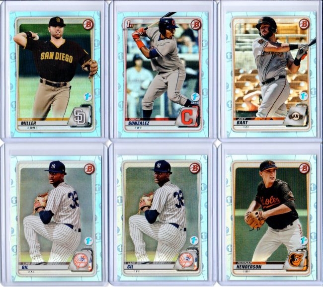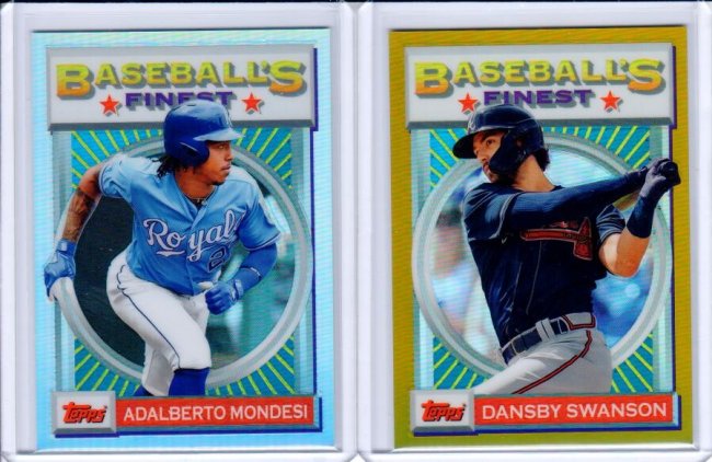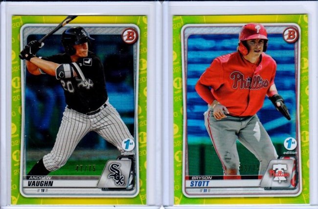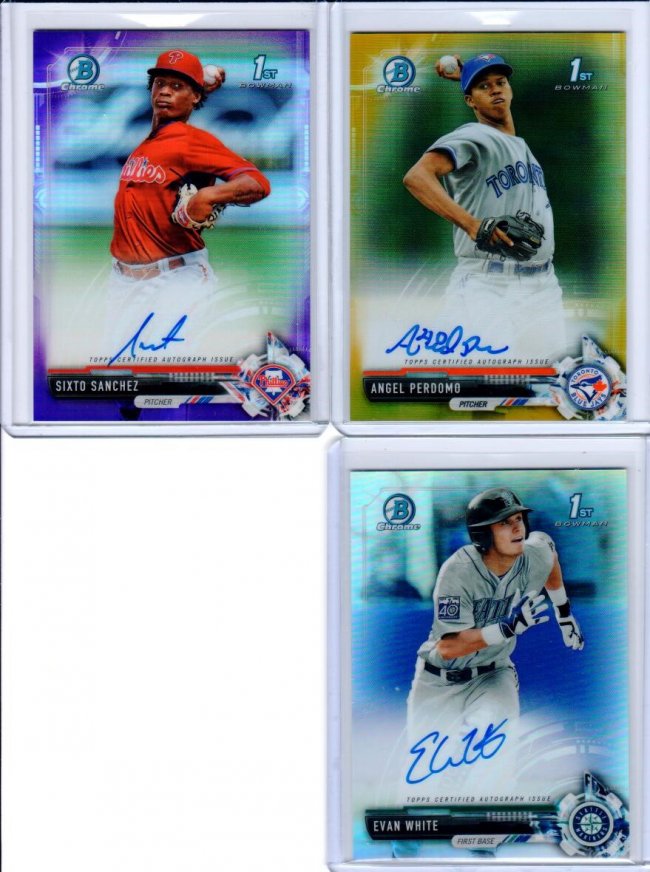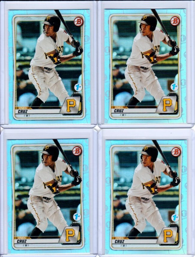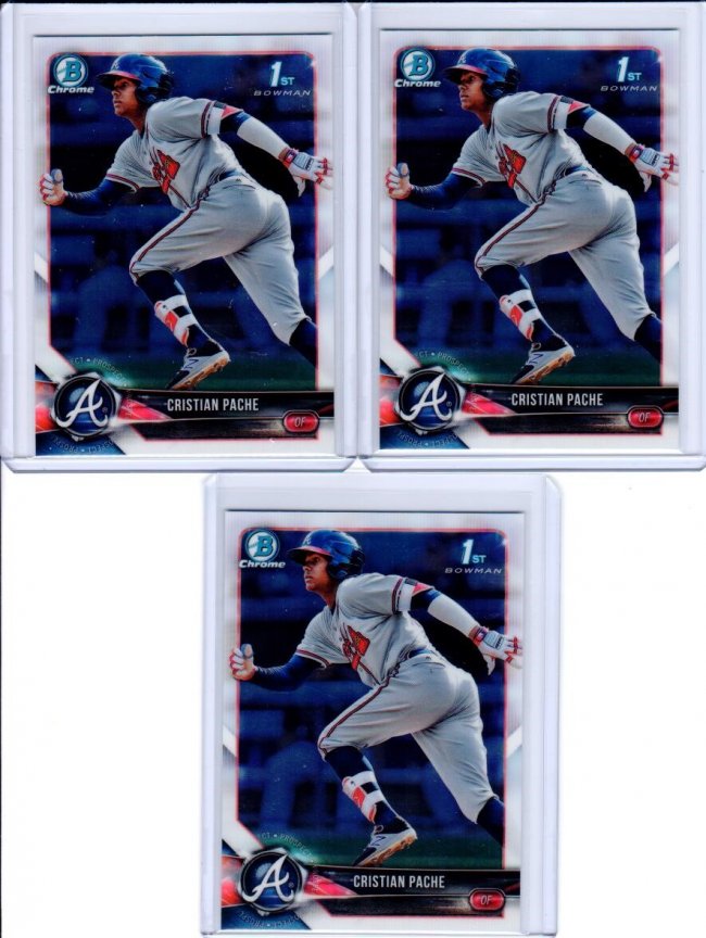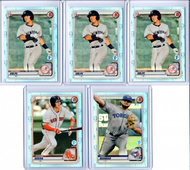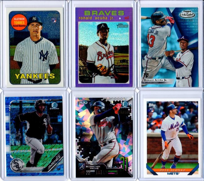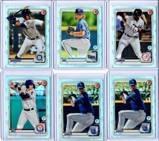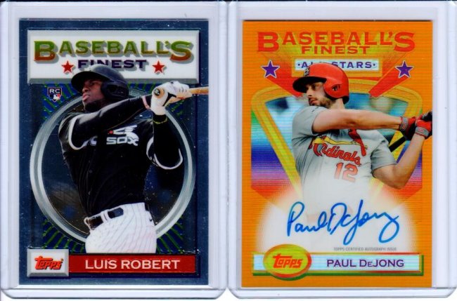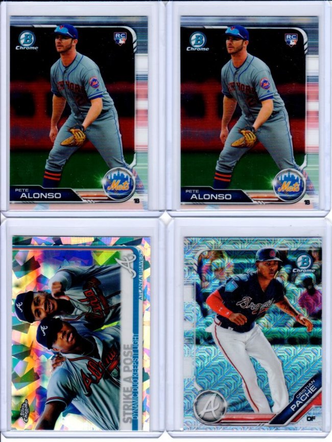 2. Cards will ship out in toploaders, bubble mailers and with tracking (and insurance on higher end deals) 3. $6 minimum purchase please..... HOWEVER if it falls under $5.99, then I can ship them in PWE, if you are willing to accept on your own risk! 4. If you PM me, please BUMP MY THREAD as well....thanks!!!! ![]() Tatis $1,500 ![]() Aquino SOLD McGwire $185 ![]() Harper 2/3 SOLD ![]() Crossbow $18 Realmuto SOLD Chapman $18 ![]() Senzel SOLD Perez / Molina / Contreras 8/9 SOLD Giolito 3/50 $100 Dozier 6/9 SOLD ![]() Caratini Sapphire 3/5 $25 Darvish 137/149 $3 Cavaco / Wallner Gold Ref 44/50 $32 Jeffers / Breaux Gold Ref 49/50 $40 ![]() ![]() $1200 or Best Offer ![]() Ryan 11/25 PSA 9 SOLD Jeter PSA 9 $190 ![]() 4x Eloy $2 each Eloy Black Gold $8 ![]() 3x Eloy Refs $3 for the lot ![]() 3x Bellinger $12 each Eloy Mega $2 ![]() 6x Schwarber $2 each / $10 for the lot. ![]() Tatis Heritage $2 Tatis BC SOLD Tatis Bowman Best SOLD 2x Tatis Topps Now $20 each Tatis Holiday $6 ![]() Tatis Gold Label SOLD Tatis Bowman Best SOLD Robert Bowman Scouts $5 ![]() 2x Robert Ref $20 each Robert BC Asia $50 Robert Panini Lazer $30 ![]() Torres Heritage Chrome 309/999 $65 Acuna Purple $20 Acuna Gold Label 50/150 $40 Eloy BC Blue SHimmer Ref 92/150 $12 Pache 6/150 $3 Alonso RC $3 ![]() Holzhauzer $40 2x Verdugo BC Auto $50 each Mize 2/50 $200 or Best Offer Pearson Bowman Paper Purple 38/250 $1 Eloy Bowman Paper Purple 98/250 $2 ![]() 2x Lewis Ref $14 for both Cease Paper Green 14/99 $2 Pache Mega $18 Pache Bowman Purple 107/250 $7 Pache Bowman Gray 132/499 $1 ![]() 2x Kieboom Mega $1.50 for both Kieboom Heritage RC $6 Senzel Heritage RC SOLD ![]() 2x Alonso Bowman Chrome RC SOLD Strike A Pose Sapphire $20 Pache Mega $1 ![]() 5x Pache Bowman Paper $10 for the lot. ![]() 3x Pache Bowman Chrome $10 each ![]() 3x Ohtani RC $3 for the lot. ![]() 6x Tatis Bowman Paper $5 for the lot. ![]() 3x Tatis Bowman Chrome $20 for the lot ![]() Aquino 13/15 SOLD Griffey Junior 15/15 $300 ------------------------------------------------------------------------------------------------------------------------------------------------------------------- 2020 Topps Baseball's Finest: (Common cards are $1 each) 2 John Means – Baltimore Orioles 3 Miguel Cabrera – Detroit Tigers 7 Andrelton Simmons – Los Angeles Angels 8 Hunter Harvey – Baltimore Orioles 10 Alex Young – Arizona Diamondbacks RC 11 Cedric Mullins – Baltimore Orioles 16 Harold Ramirez – Miami Marlins 17 Bobby Bradley – Cleveland Indians 19 Josh Reddick – Houston Astros 23 Jorge Soler – Kansas City Royals 27 Hunter Dozier – Kansas City Royals 34 Robbie Ray – Arizona Diamondbacks 37 Yuli Gurriel – Houston Astros 38 Keston Hiura – Milwaukee Brewers 40 Yordan Alvarez - Houston Astros RC $20 41 Logan Allen – Cleveland Indians 44 Tim Anderson – Chicago White Sox 45 Willi Castro – Detroit Tigers 47 Albert Pujols – Los Angeles Angels $3 48 Trevor Bauer – Cincinnati Reds 52 David Price – Los Angeles Dodgers 53 Lorenzo Cain – Milwaukee Brewers 55 Trey Mancini – Baltimore Orioles 58 Anthony Rendon – Los Angeles Angels 60 Sandy Alcantara – Miami Marlins 62 Max Muncy – Los Angeles Dodgers 65 Mike Soroka – Atlanta Braves 68 Brandon Woodruff – Milwaukee Brewers 70 Oscar Mercado – Cleveland Indians 72 Adalberto Mondesi – Kansas City Royals 74 Brian Anderson – Miami Marlins 75 Eugenio Suarez – Cincinnati Reds 78 Dansby Swanson – Atlanta Braves 79 Raisel Iglesias – Cincinnati Reds 86 Freddie Freeman – Atlanta Braves AS 87 Carlos Santana – Cleveland Indians AS 88 Ketel Marte – Arizona Diamondbacks AS 89 Javier Baez – Chicago Cubs AS $3 90 Paul DeJong – St. Louis Cardinals AS 92 DJ LeMahieu – New York Yankees AS 94 Masahiro Tanaka – New York Yankees AS 95 Max Scherzer – Washington Nationals AS 96 Jose Abreu – Chicago White Sox AS 97 Pete Alonso – New York Mets AS $4 98 Gary Sanchez – New York Yankees AS 2x 100 Alex Bregman – Houston Astros AS $2 101 Nolan Arenado – Colorado Rockies AS $3 102 Jacob deGrom – New York Mets AS $2 103 Justin Verlander – Houston Astros AS $2 106 Michael Brantley – Houston Astros AS 109 J.T. Realmuto – Philadelphia Phillies AS 110 Jorge Polanco – Minnesota Twins AS 112 Shane Bieber – Cleveland Indians AS 114 Joey Gallo – Texas Rangers AS 117 Paul Goldschmidt – St. Louis Cardinals x2 118 Willians Astudillo – Minnesota Twins 119 Tommy Pham – San Diego Padres 120 Colin Moran – Pittsburgh Pirates 121 Victor Robles – Washington Nationals 2x 123 Jeff McNeil – New York Mets 125 Lourdes Gurriel Jr. – Toronto Blue Jays 128 Shin-Soo Choo – Texas Rangers 130 Tyler Glasnow – Tampa Bay Rays 131 Bryan Reynolds – Pittsburgh Pirates 132 Austin Nola – Seattle Mariners RC $3 134 Marcus Semien – Oakland Athletics 136 Josh Bell – Pittsburgh Pirates 140 Justin Dunn – Seattle Mariners RC- $3 143 Mike Minor – Texas Rangers 144 Nelson Cruz – Minnesota Twins 146 A.J. Puk – Oakland Athletics RC- $2 147 Blake Snell – Tampa Bay Rays 148 Max Kepler – Minnesota Twins 150 Adam Haseley – Philadelphia Phillies 151 Jose Berrios – Minnesota Twins 153 Jonathan Hernandez – Texas Rangers RC $3 154 Nick Solak - Texas Rangers RC $3 155 Trea Turner – Washington Nationals 156 Buster Posey – San Francisco Giants 157 Marcus Stroman – New York Mets x2 159 Seth Brown – Oakland Athletics RC $3 161 Adam Ottavino – New York Yankees 164 Steven Matz – New York Mets 165 Kevin Kiermaier – Tampa Bay Rays 168 Cavan Biggio – Toronto Blue Jays 169 Mike Yastrzemski – San Francisco Giants 171 Mitch Keller – Pittsburgh Pirates 172 Hyun-Jin Ryu – Toronto Blue Jays 173 Willy Adames – Tampa Bay Rays 178 Mitch Haniger – Seattle Mariners 179 Ronald Guzman – Texas Rangers 184 Didi Gregorius – Philadelphia Phillies 186 Bryce Harper – Philadelphia Phillies $4 187 Jesus Luzardo – Oakland Athletics RC $5 188 Austin Meadows – Tampa Bay Rays 189 Mil