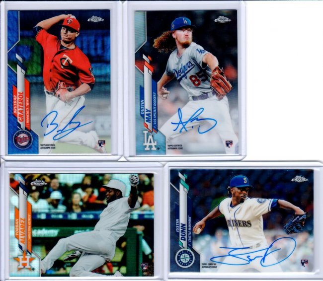 Dustin May base RC 1.5 Kyle Lewis base RC 9 Gavin Lux base RC 3.5 Bo Bichette base RC 5 Yordan Alvarez base RC 2 |
