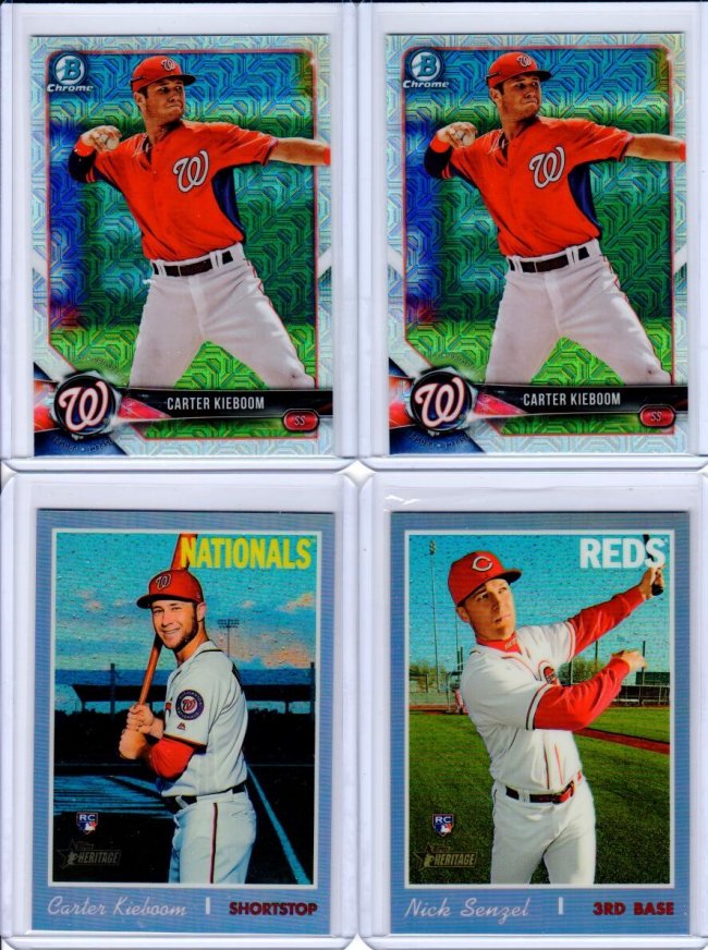 (Common cards are $1 each) 5 Yu Chang – Cleveland Indians RC 10 Alex Young – Arizona Diamondbacks RC 15 Tyler Alexander – Detroit Tigers RC 25 Jake Rogers – Detroit Tigers RC 30 Bubba Starling – Kansas City Royals RC 31 Matt Thaiss – Los Angeles Angels RC 36 Travis Demeritte – Detroit Tigers RC 39 Mookie Betts – Los Angeles Dodgers 50 Corey Seager – Los Angeles Dodgers 56 Jordan Yamamoto – Miami Marlins RC 63 Sam Hilliard – Colorado Rockies RC 66 Robel Garcia – Chicago Cubs RC 126 Brusdar Graterol – Los Angeles Dodgers RC 129 Kean Wong – San Francisco Giants RC 180 Brendan McKay – Tampa Bay Rays RC |