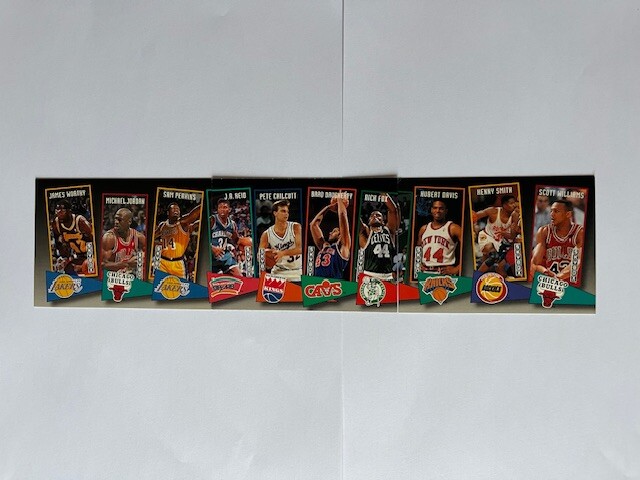 Thank you for your kind comments! @mglevy125 It was already in my list, thanks anyway @LovelyLlamas 1997-98 Metal Precious Metal Gems was the first serially numbered set where a portion of the print run had a variation (first ten being green). See also 1999-00 Focus rookies and 2000-01 EX rookies. --> Beaten by fleer bleachers black and holographic foil already in my list Wasn’t 1989 the first year for the Sears Hoops set? --> What is it? I do not understand the word sears in english... Shaq 1992-93 Upper Deck was the first redemption card issued I believe --> Beaten by 1991-92 wild card already in my list 1992-93 Fleer All Stars was the first set with gold foil --> Beaten by 1989 NC collegiate already in my list I’m thinking 2001-02 Ultimate Collection has the first Rookie Patch Auto (RPA) --> Beaten by spx 2000-01 already in my list as rookie jersey auto. In my opinion having listed auto jersey rookie on one hand, and patch set on another hand, it is difficult to consider RPA as in innovation. The 2000-01 Hoops Hot Prospects is the first (and only?) card featuring game worm and college worn materials --> Can you clarify? Can't find that ones 2001-02 Topps Pristine Sweat and Tears was the first set with Towel swatches --> thank you, will add that one 2001-02 Topps Heritage Unity had headband swatches --> thank you, will add that one 1994-95 Collector’s Choice Blow Up 5x7 autographs be the first box topper --> I am currently working only on cards fitting in a binder = max 2"3/8 @Deadshot Thank you, will add it to my list @libruary: Can you give me more information about that one. Cannot find the exact reference Last edited by laurentolaj; 10-13-2020 at 04:50 PM. |