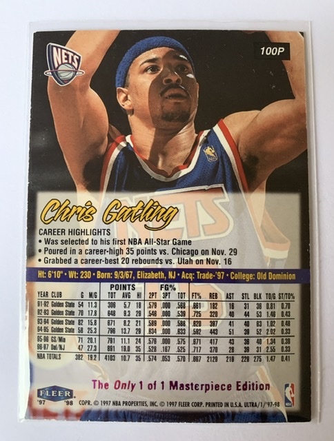 First ever basketball card with premium attribute according to the serial number: 1997 Bleachers/Fleer Gold Foil