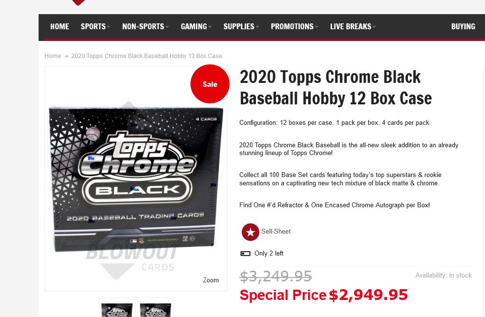 I will donate the case. I ask you to send me $0.50 paypal goods (blowouttv@blowoutcards.com) so I can easily print a shipping label - I will donate the rest for supplies & postage. You get every card. The bidding deadline is Friday at 10pm EST You get every card for your team. ALL CARDS SHIP. 1 hobby case team $$$ bidder Angels $5 Astros $5 Athletics $5 Blue Jays $5 Braves $5 Brewers $5 Cardinals $5 Cubs $5 Diamondbacks $5 Dodgers $5 Giants $5 Indians $5 Mariners $5 Marlins $5 Mets $5 Nationals $5 Orioles $5 Padres $5 Phillies $5 Pirates $5 Rangers $5 Rays $5 Reds $5 Red Sox $5 Rockies $5 Royals $5 Tigers $5 Twins $5 White Sox $5 Yankees $5 Avg team should sell for $96 Google docs direct link: https://docs.google.com/spreadsheets...it?usp=sharing Autos available: CBA-AR Anthony Rendon CBA-ARD Alex Rodriguez CBA-AV Alex Verdugo CBA-BL Adrian Beltre CBA-BR Bryan Reynolds CBA-BRG Alex Bregman CBA-CB Miguel Cabrera CBA-CDY Cody Bellinger CBA-CF Carlton Fisk CBA-CJ Chipper Jones CBA-CKL Corey Kluber CBA-CLK Will Clark CBA-CR Cal Ripken Jr. CBA-CS Corey Seager CBA-DE Dennis Eckersley CBA-DJ Derek Jeter CBA-DLY Domingo Leyba CBA-DM Dustin May CBA-DMT Don Mattingly CBA-DST Darryl Strawberry CBA-DWT David Wright CBA-DYL Dylan Cease CBA-ED Edgar Martinez CBA-FT Frank Thomas CBA-GC Gerrit Cole CBA-GRY Sonny Gray CBA-GS Gary Sheffield CBA-GSP George Springer CBA-GT Gleyber Torres CBA-HA Hank Aaron CBA-HR Hyun-Jin Ryu CBA-IR Ivan Rodriguez CBA-IS Ichiro CBA-JD J.D. Martinez CBA-JM Jeff McNeil CBA-JO Joe Mauer CBA-JR J.T. Realmuto CBA-JS Juan Soto CBA-JYG Joey Gallo CBA-KM Ketel Marte CBA-LA Luis Arraez CBA-LC Luis Castillo CBA-LFT Kenny Lofton CBA-LG Lucas Giolito CBA-LR Luis Robert CBA-LV Luke Voit CBA-LW Larry Walker CBA-MA Miguel Andujar CBA-MAX Max Kepler CBA-MB Michael Brantley CBA-MC Matt Carpenter CBA-MMC Mark McGwire CBA-MO Matt Olson CBA-MR Mariano Rivera CBA-MS Mike Schmidt CBA-MT Mike Trout CBA-MY Mike Yastrzemski CBA-NC Nick Castellanos CBA-NG Nomar Garciaparra CBA-NH Nico Hoerner CBA-NS Nick Solak CBA-PA Pete Alonso CBA-PC Patrick Corbin CBA-PD Paul DeJong CBA-PG Paul Goldschmidt CBA-PM Pedro Martinez CBA-RA Ronald Acuña Jr. CBA-RC Rod Carew CBA-RD Rafael Devers CBA-RH Rhys Hoskins CBA-SA Shogo Akiyama CBA-SC Shin-Soo Choo CBA-SK Sandy Koufax CBA-SOL Jorge Soler CBA-SOR Mike Soroka CBA-SY Shun Yamaguchi CBA-TE Tommy Edman CBA-TEJ Miguel Tejada CBA-TG Tom Glavine CBA-TP Tony Pérez CBA-VG Vladimir Guerrero CBA-VGJ Vladimir Guerrero Jr. CBA-VR Victor Robles CBA-WB Walker Buehler CBA-WC Willson Contreras CBA-WM Whit Merrifield CBA-XB Xander Bogaerts CBA-YA Yordan Alvarez CBA-YG Yuli Gurriel CBA-ZG Zac Gallen SFA-AM Austin Meadows /99 SFA-JS Juan Soto /99 SFA-KM Ketel Marte /99 SFA-KN Kevin Newman /99 SFA-NH Nico Hoerner /99 SFA-OM Oscar Mercado /99 SFA-PA Pete Alonso /99 SFA-RA Ronald Acuña Jr. /99 SFA-RD Rafael Devers /99 SFA-RH Rhys Hoskins /99 SFA-TE Tommy Edman /99 SFA-VG Vladimir Guerrero Jr. /99 SFA-VR Victor Robles /99 SFA-WB Walker Buehler /99 SFA-YA Yordan Alvarez /99