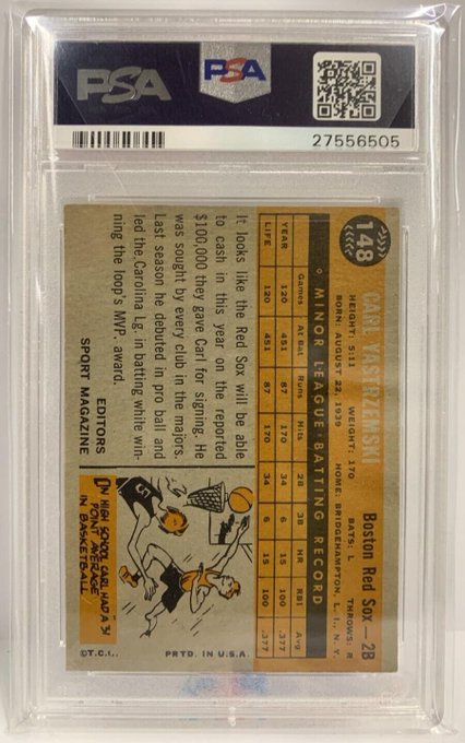 https://twitter.com/RealJerryColvin/...86598682624001 1) Guy buys 1960 Carl Yastrzemski #148 PSA 7 cert# 27556505 in a lot and it PASSES eBay Authentication. https://ebay.com/itm/115623100234?ha...p2047675.l2557 2. Guy sells the 1960 Carl Yastrzemski #148 PSA 7 cert# 27556505 https://ebay.com/itm/185710044191?ha...p2047675.l2557 3)It FAILS eBay Authentication and then is DEACTIVATED on 1/14/2023 in the PSA database. 4) He contacts eBay to find out what happened. Ebay tells him to get answers from PSA. 5) He contacts PSA and they tell him eBay won't allow them to comment. |