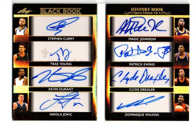 Curry, Young, Durant, Jokic, Johnson, Ewing, Drexler, Wilkins- Black Book 8x Auto Booklet # 1/1 ![]() ![]() Other Basketball Card: Kevion Durant- Souvenir Book Signatures- 6 x Jersey Auto # 11/25