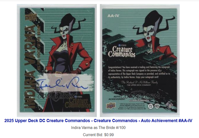 ![]() Creature Commandos trading cards purchased exclusively on Upper Deck e-Pack® will feature: 3 cards per pack, 15 packs per box, 12 boxes per case The 18-card (fractional) Base Set featuring your favorite characters from the hit show An incredible lineup of vibrant Base Set parallels, including Neon Blue (#'d to 100), Neon Purple (#'d to 50), and Neon Magenta (#'d to 25) A variety of thematic inserts like Modern Monsters and Task Force M 1-2 glow-in-the-dark Glowing Ghouls cards per box, on average The opportunity to complete the set to earn exciting Upper Deck e-Pack® exclusive achievement cards!  |