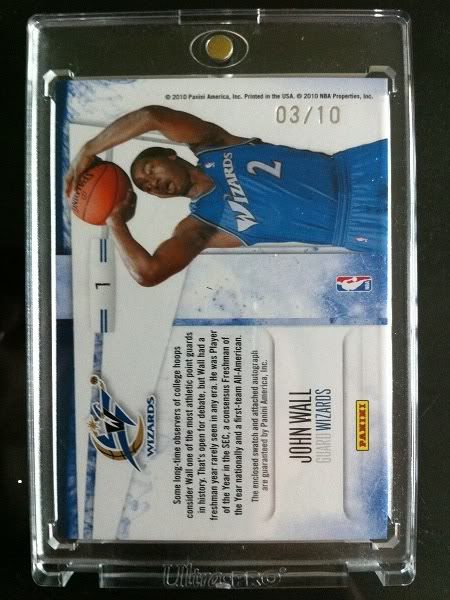$800,000 for a case of this stuff? Man thats alot to recoup from this case. The Wall is a nice hit and probably one of the top pulls from this product. Like every Panini product, Im just not impressed with the design and content.