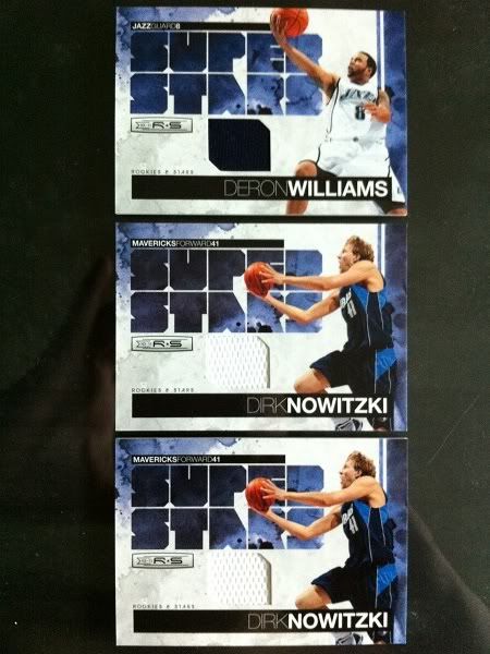 that is a pretty good case there, it would be hard to do better than that really. it seems like 1/2 the breaks or more on here have some sort of awesome trevor booker card. is that #'d to 10 or 25? the other patch cards are nice too but they unfortunately probably wont go for a whole lot, the dirk is probably $15-$20.