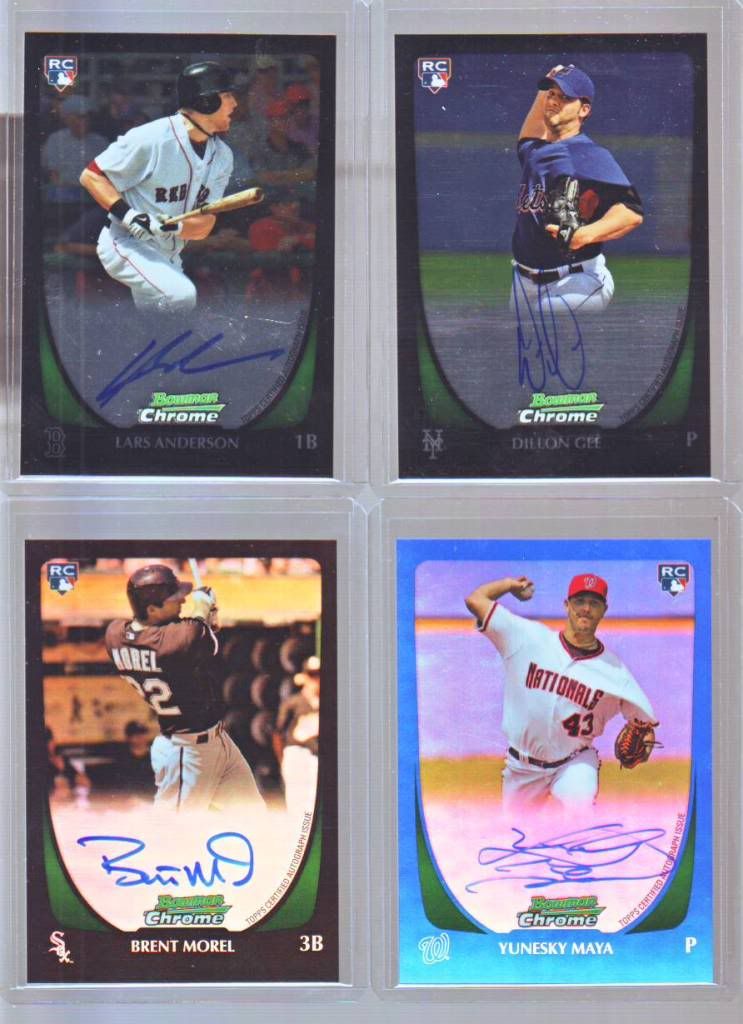 Prices are listed and Delivered... Only trading for goldschmidt or HTF mark reynolds stuff... Harper Lot - $170 8 Chrome 9 Base 1 International SP ![]() ![]() 2011 SP Legendary Cuts Cy Williams Cut Auto #d 05/10 - $80 Last one sold for $92 DLVD on ebay... ![]() 2011 Bowman Garin Cecchini Blue Refractor Autograph - $70 One just sold today on ebay for $82 DLVD ![]() 2011 Bowman Stetson Allie Blue Refractor Autograph - SOLD ![]() 2011 Bowman Dave Sappelt Gold Refractor #/50 - SOLD ![]() 2011 Ryan Braun Topps Tribute Jersey Auto #/75 - $23 ![]() 2011 Bowman Zach Britton Futures Game 3X jersey #/99 - $12 ![]() 2011 Bowman Mason Williams Gold Refractor #/50 - $20 ![]() 2011 Bowman Danny Duffy Topps 100 Printing Plate 1/1 - $20 ![]() 2011 Dillon Gee RC Auto $10 2011 Brent Morel REF #/500 RC Auto $6 2011 Yuneski Maya Blue Ref #/250 Auto $10