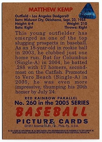 Here is the Bowman Heritage Matt Kemp RC 1/1 red border ![]()