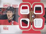 I cracked open 8 master cases (160 boxes) of In the Game's Captain-C. Pictured below are some of the top cards I still have available for sale. I have plenty of silver jerseys and autographs available too. I have some listings on eBay already, but I'll list the rest of them shortly. If there's a card posted on this thread that you're interested in, please shoot me an email with your best offer. My prices are negotiable ![]() Thanks for the look :Mike D Krazy Dude Photobucket Pictures (Only for display) eBay Auctions eBay Auctions 2 #'d to 2 or less ![]() ![]() ![]() Zdeno Chara 2/2 – Captain’s C Roberto Luongo 1/1 – Gold Patch Mario Lemieux 1/1 – Gold International Captain Zach Parise 1/1 - Gold Complete Jersey Complete Jersey /9 ![]() Tony Amonte Vincent Lecavalier Zdeno Chara International Captains /9 ![]() Alexander Ovechkin Bobby Clarke Brian Leetch Mario Lemieux Scott Niedermayer Record Setter /9 ![]() Brian Bellows Steve Yzerman Game-Used Patch /9 ![]() Craig Hartsburg Dale Hunter Dave Taylor Dion Phaneuf Dustin Brown Eric Lindros Eric Staal Joe Sakic Joe Thornton Lanny McDonald Mario Lemieux Mark Messier Nicklas Lidstrom Pavel Bure Rick Nash Wendel Clark Zach Parise Gold Franchise Captains /10 ![]() Buffalo Sabres - Danny Gare/Gilbert Perreault/ Pat LaFontaine Chicago Blackhawks - Stan Mikita/Chris Chelios/Tony Amonte Winnipeg Jets - Dale Hawerchuk/Thomas Steen/Keith Tkachuk Gold Stick and Jersey /10 Dale Hunter Eric Staal Mark Messier Nicklas Lidstrom Tony Amonte Gold Game-Used Jersey /10 ![]() Brian Bellows Denis Savard Kirk Muller Luc Robitaille Pat LaFontaine Theoren Fleury