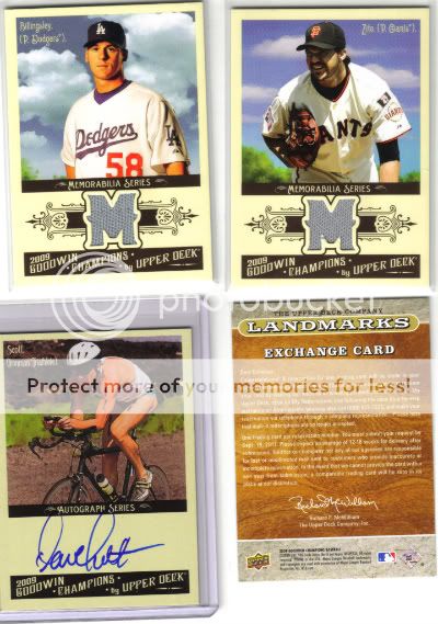 Black Border Minis Rollie Fingers B.J. Upton David Ortiz Aaron Cook Chris Johnson Silver Minis B.J. Upton Robinson Cano Random Other Inserts Mike "King" Kelly - Citizens of the Day Al Gore - Citizens of the Century The Hits Chad Billingsley GU jersey Barry Zito GU jersey Dave Scott auto - Ironman Triathlete ![]() and Landmark Redemption ![]()